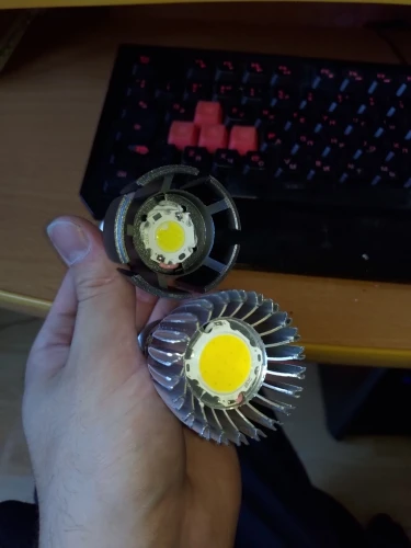Я заказал лампы 9 Вт, но оба, которые я получил, были только 3,7 ВТ (Измерены с измерителем при напряжении питания 12 вольт). Структура лампы хорошо сделана, и я должен изменить светодиод cob 5 Вт, чтобы я мог получить его немного ярче. Теплоотвод настолько мал (лампа короткая), что ii невозможно поставить там 9 Вт cob без перегрева. Доставка в Европу занимает 5 недель.