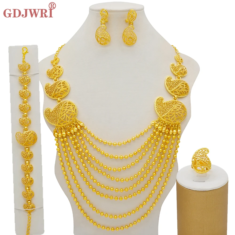 2021 Дубай индийский арабский Золотой многослойный комплект ювелирных изделий ожерелье эфиопское Золото Цвет нигерийский Свадебный Африканский бисер ювелирные наборы