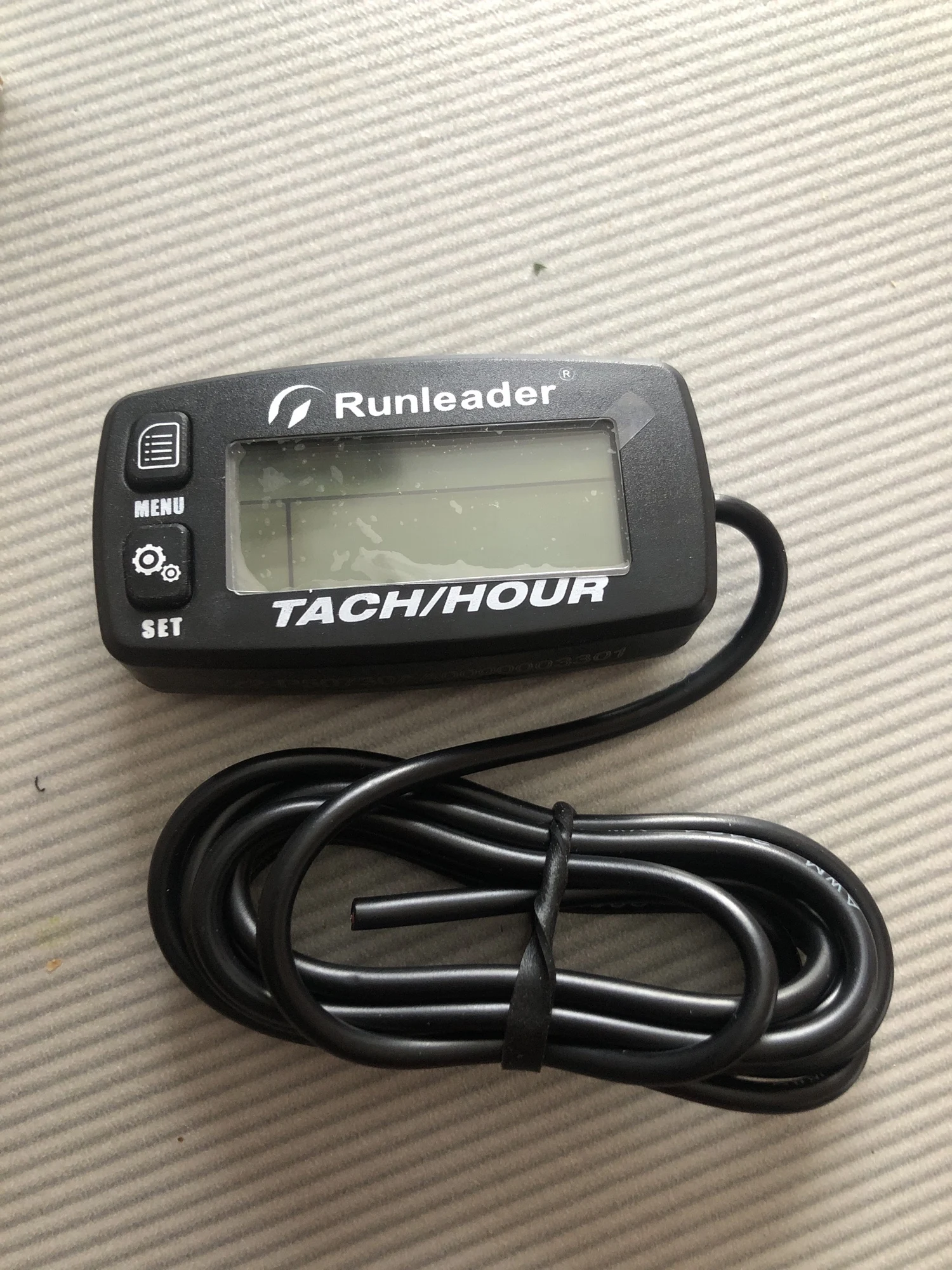 Runleader RL-HM032B, цифровой тахометр с напоминанием об обслуживании двигателя с автономным питанием, содержит тахометр, счетчик часов, таймеры обслуживания, таймер работы, программируемое напоминание о максимальных оборотах и выбор режима подсветки. Сменный аккумулятор, функция отключения и водонепроницаемая конструкция.