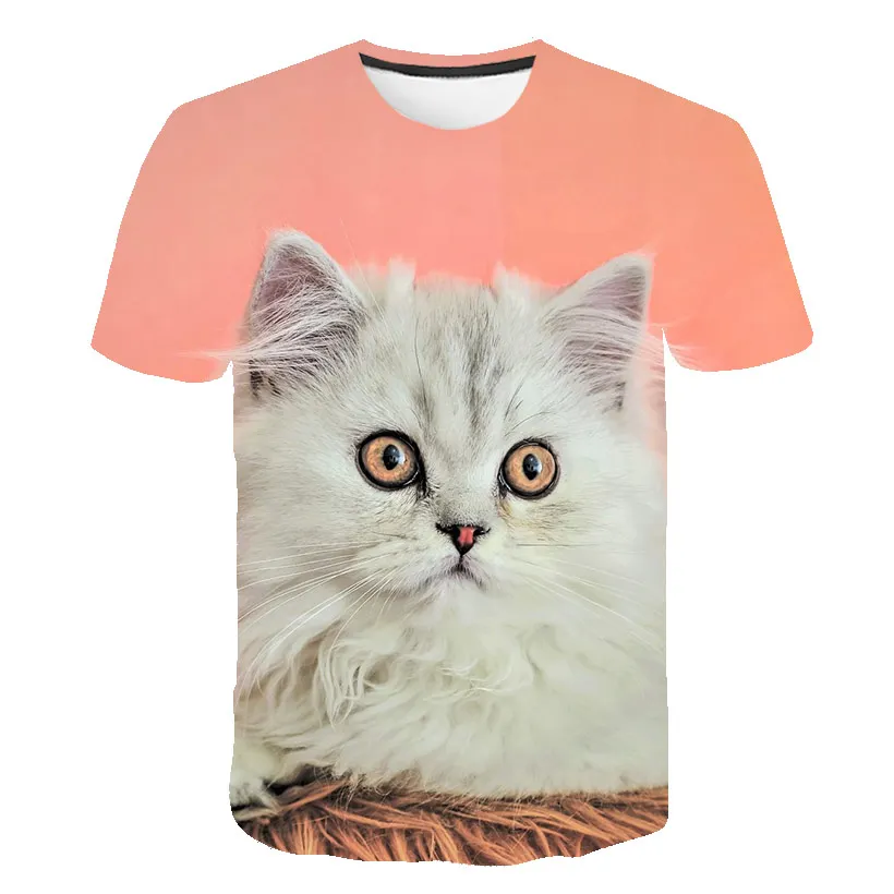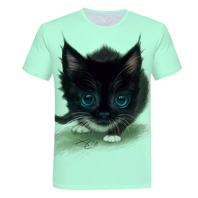 Летние мужские и женские футболки с котом, Короткие футболки для ма...
