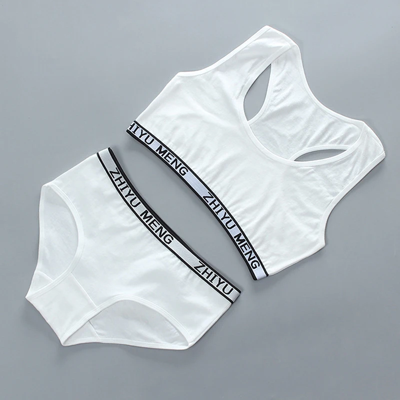 Бюстгальтер и трусики для молодых девушек, хлопковый спортивный бюстгальтер, нижнее белье для подростков