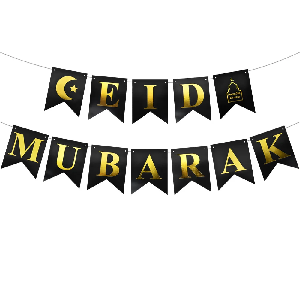 Баннер ИД Мубарак, 1 комплект, тканевая бумага флаг буквы и баннеры...