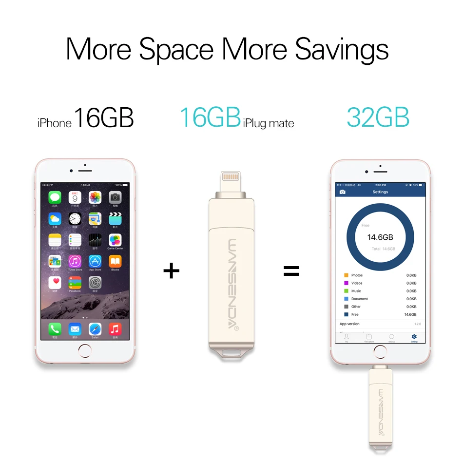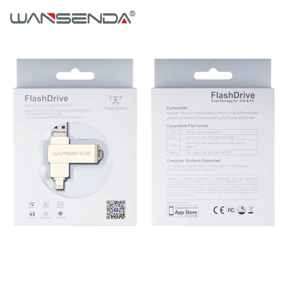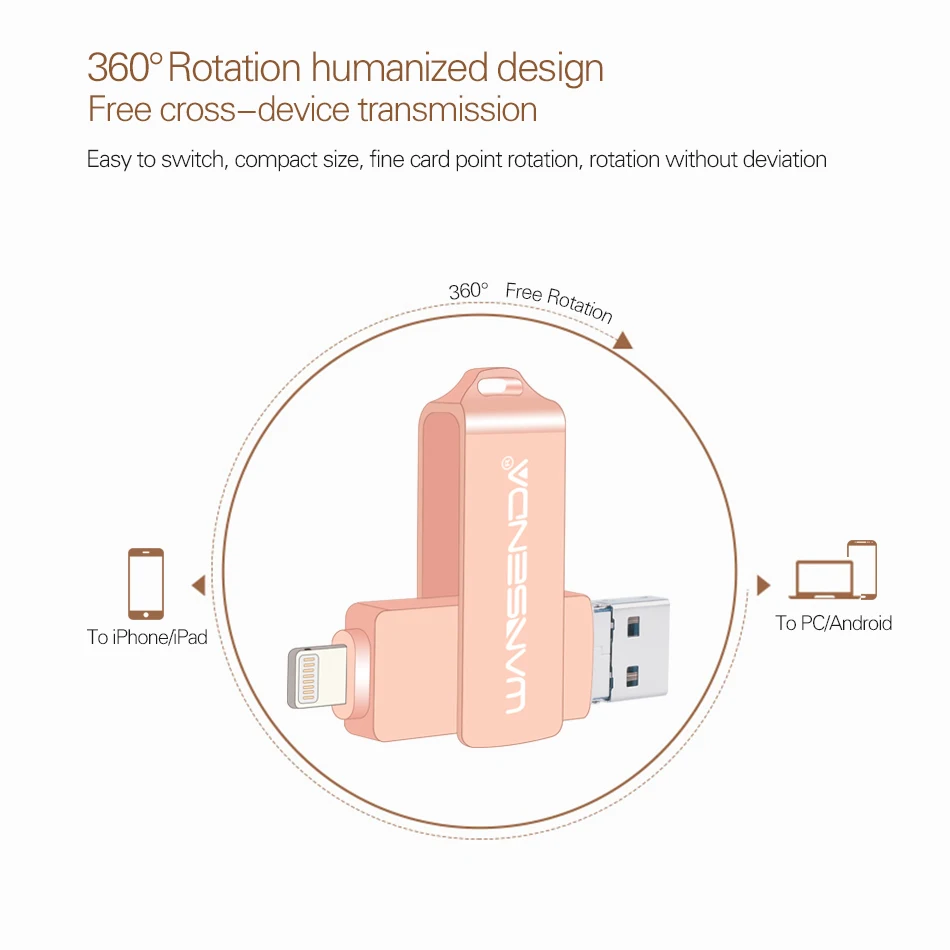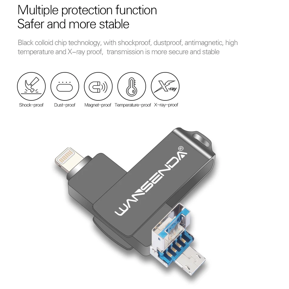 WANSENDA OTG USB флеш-накопитель 3 в 1 USB3.0 iOS микро usb флэш-накопитель 128 Гб 64 ГБ 32 ГБ оперативной памяти, 16 Гб встроенной памяти, 8 ГБ флэш-накопитель USB флэш-диск