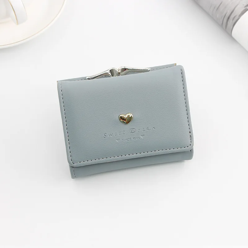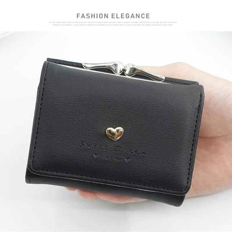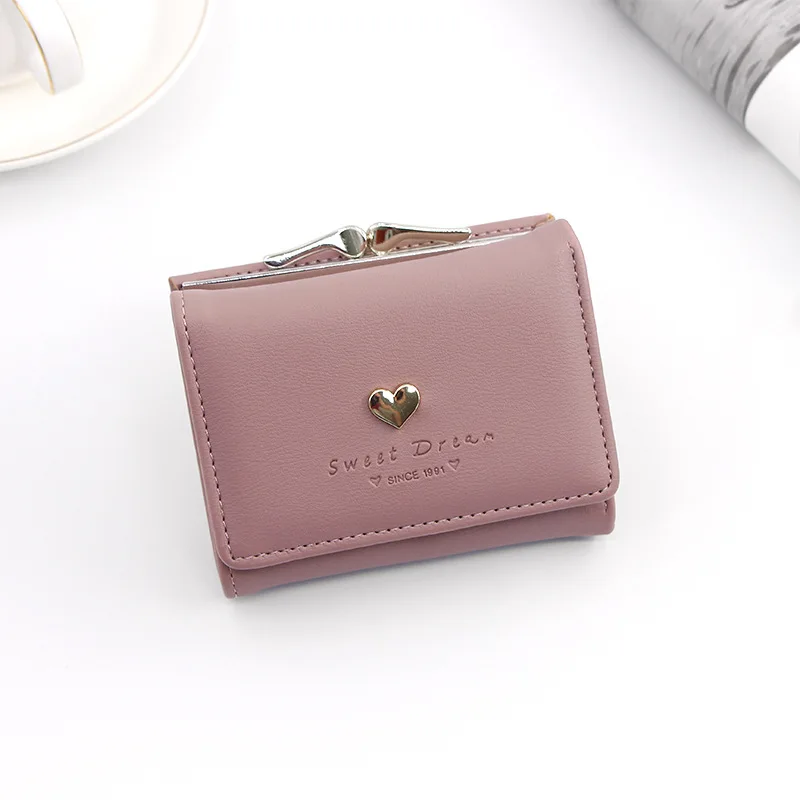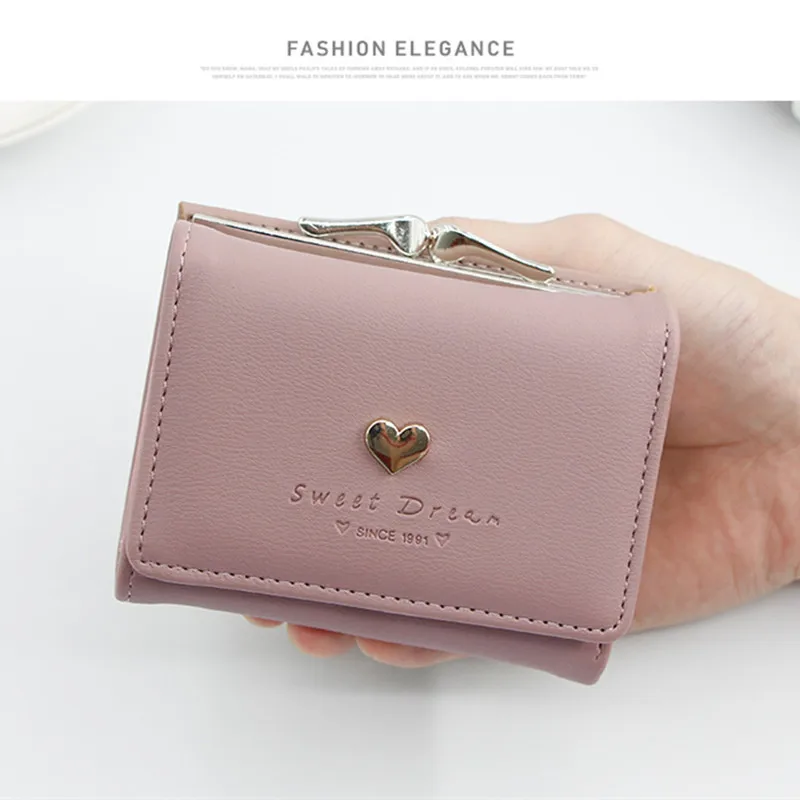 Новый женский кошелек, симпатичный Повседневный простой кошелек в форме сердца, студенческий кошелёк для монет, Складывающийся втрое, с застежкой и несколькими отделениями для карт, женский короткий клатч