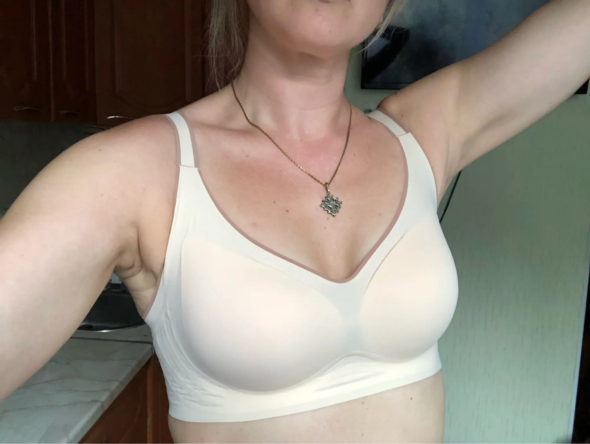 Без пушапа он плоский, соответственно, под весом груди растягивается очень странно. На ощупь неплохой. На ОГ 103/85 по размеру