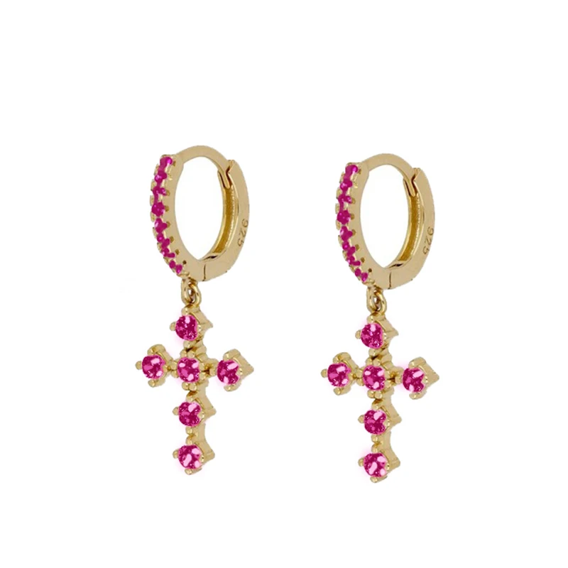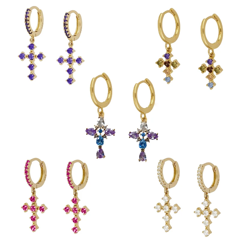 CCFJOYAS 925 стерлингового серебра серьги-кольца с крестиком женские очаровательный цвет радугифиолетовыйрозово-красныйбелый Цвет цирконие серьги
