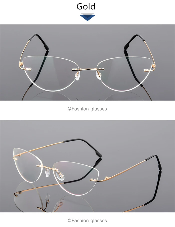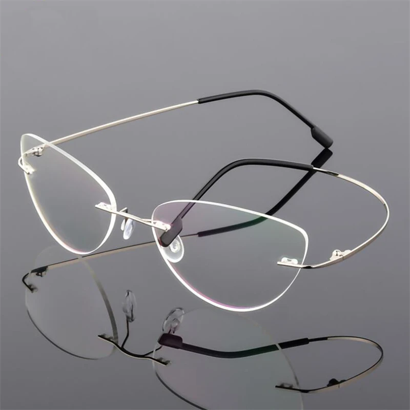 Очки кошачий глаз без оправы, светильник кие очки кошачий глаз без оправы из титанового сплава, с диоптриями от-0,5-0,75 до-6
