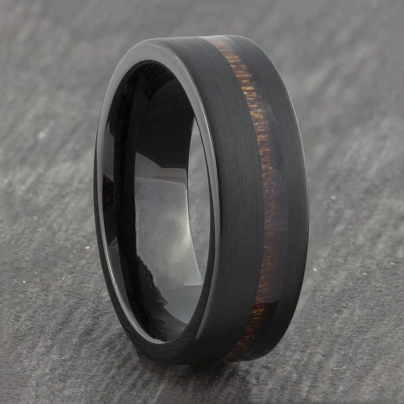 Новое высококачественное титановое кольцо для мужчин. Поверхность кольца чистого черного цвета с длинной деревянной текстурой кольца из нержавеющей стали. Модный мужской стиль