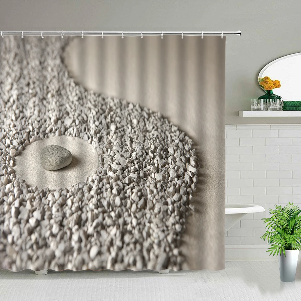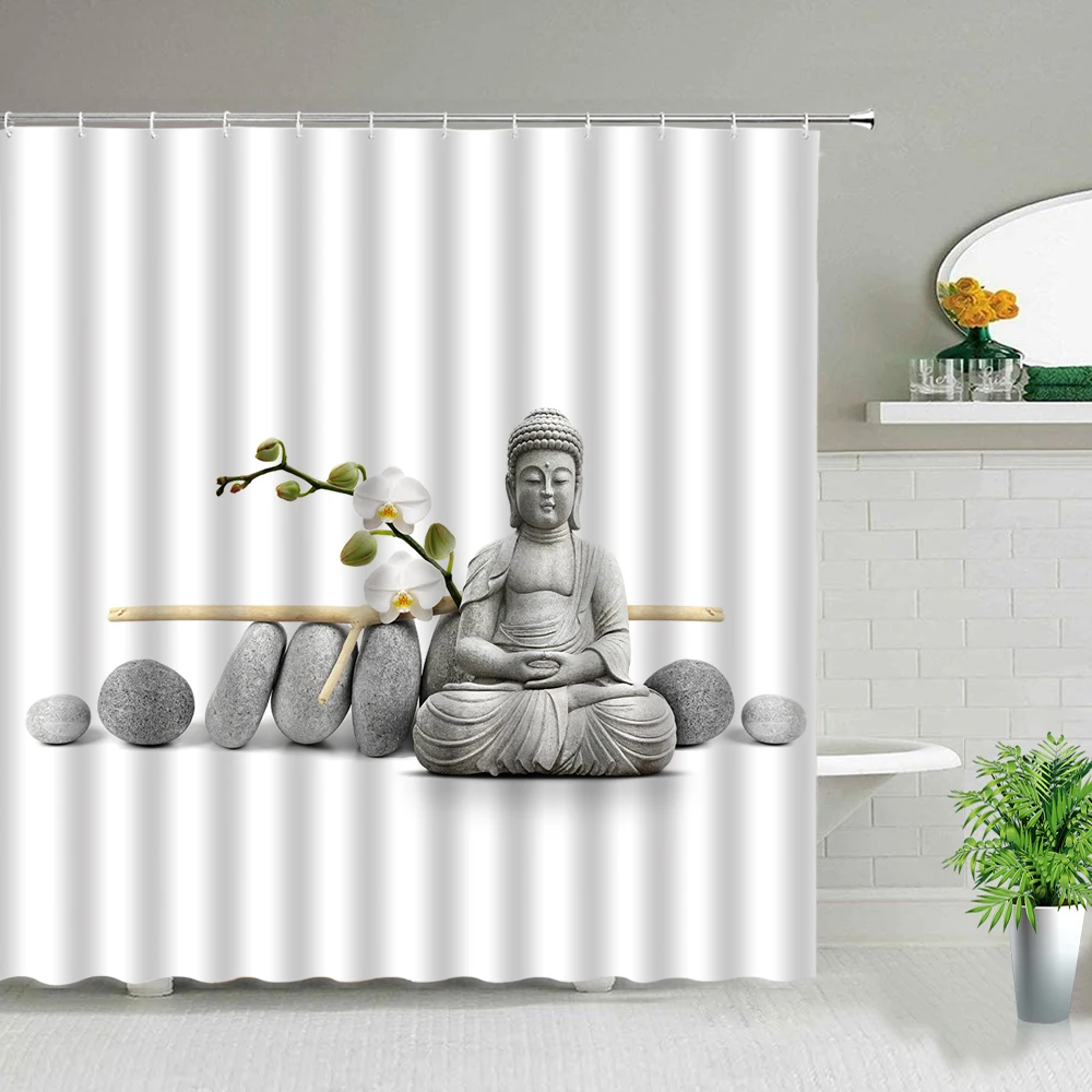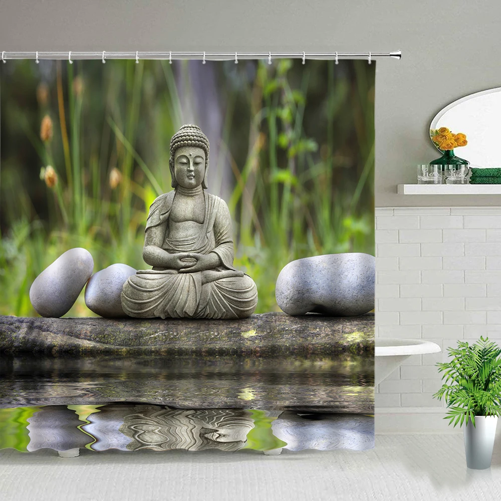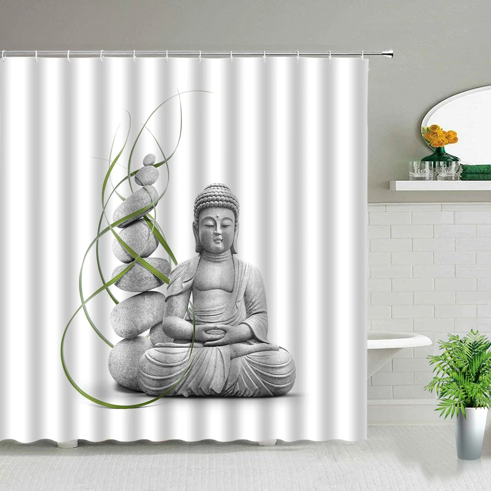 Декоративная занавеска для душа, креативная декоративная занавеска в ванную комнату с крючками, из водонепроницаемой ткани, декор для ванны, с рисунком Будды, Zen Stone