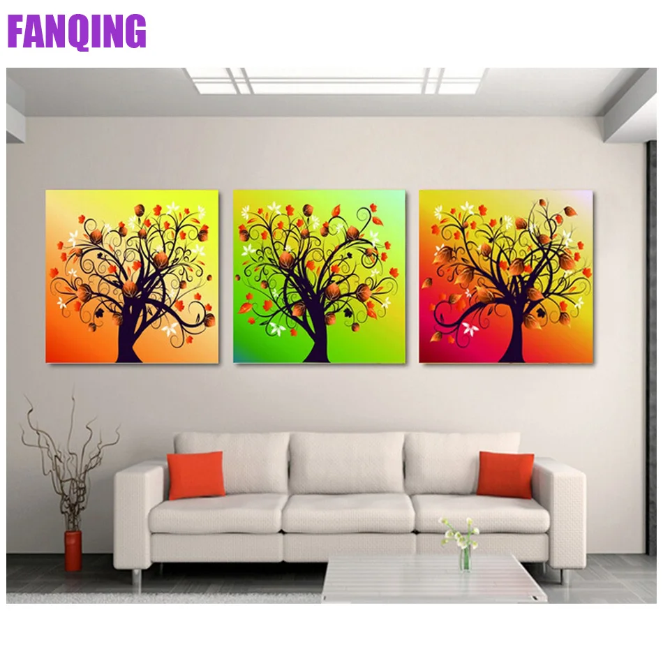 3 шт. настенная живопись алмазное дерево полный квадрат/круглые стразы Триптих Алмазная вышивка мозаика Вышивка крестом