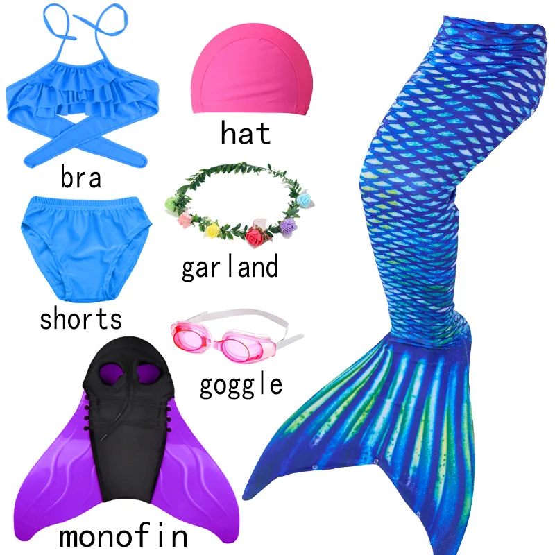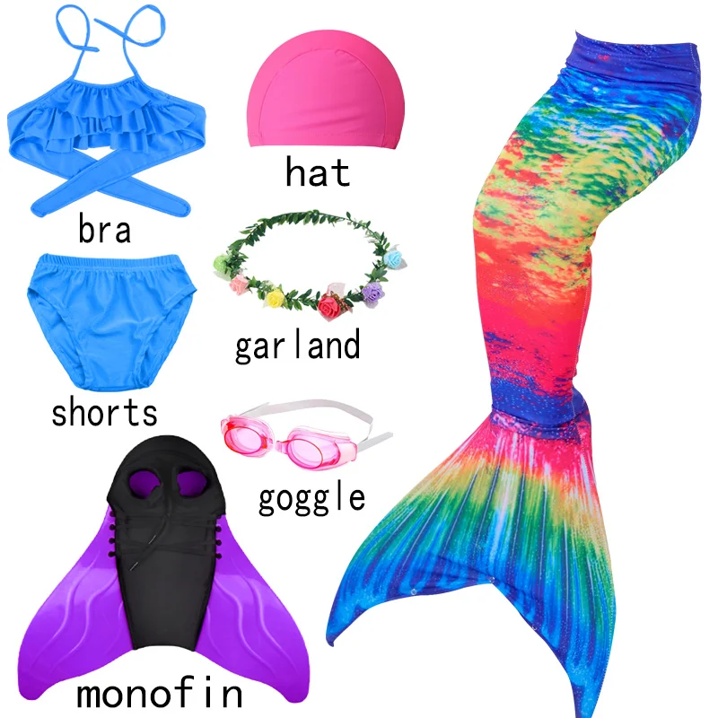 Купальник с хвостом Русалочки для девочек 3-12 лет, детский купальный костюм с хвостом Русалочки с плавниками для косплея на день рождения