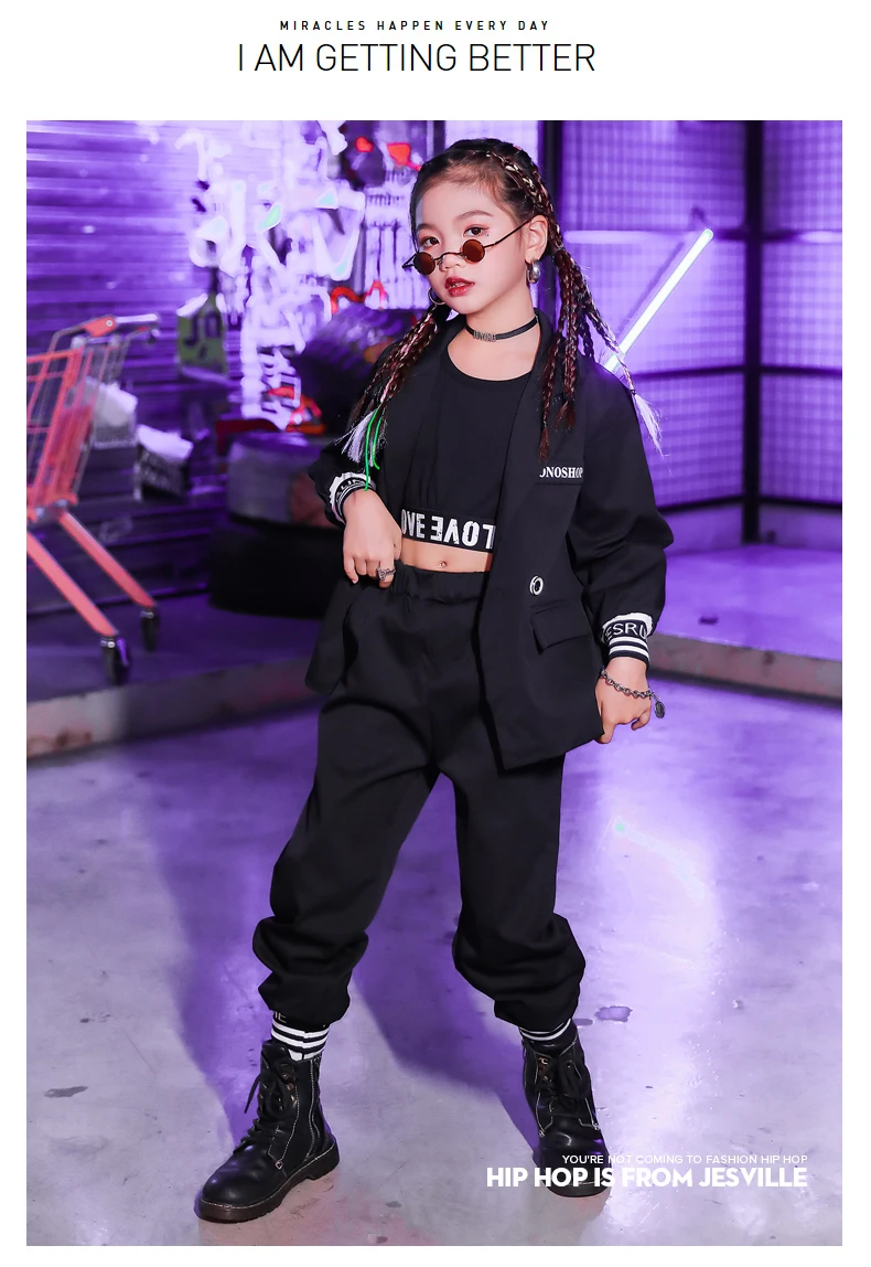 Костюмы в стиле хип-хоп для девочек, милые костюмы для детей, очки для джаза, танцевальные костюмы