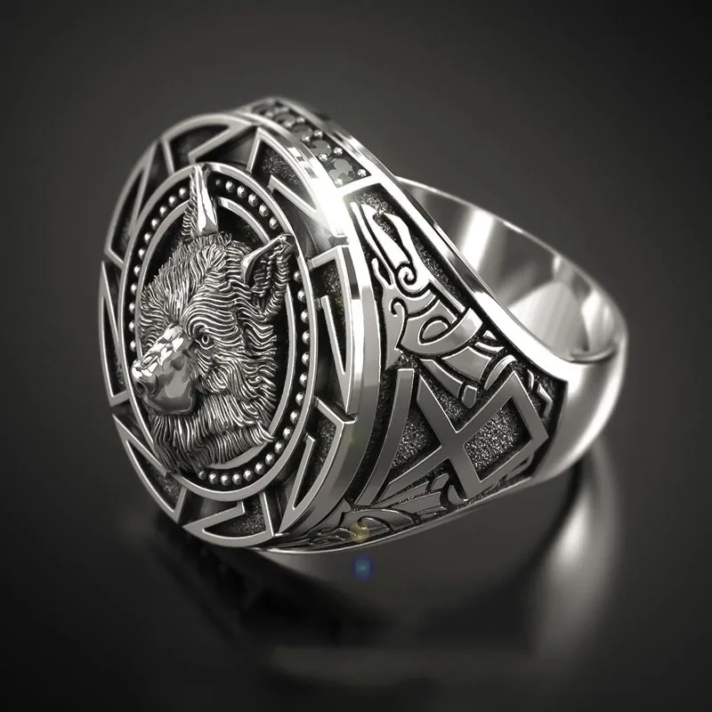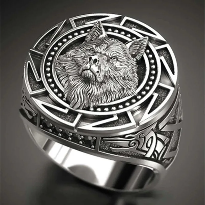 Горячая новинка Стильное мужское кольцо викингов воин голова Волка Ретро кельтский Тотем медное металлическое кольцо ювелирные изделия подарок