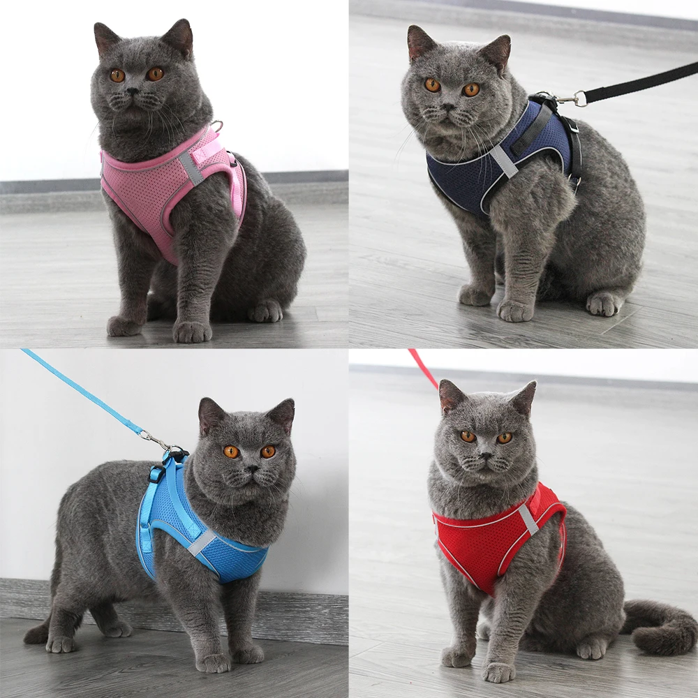 Комплект из поводка и жилета, дышащая сетка, для маленьких кошек и щенков, Светоотражающий Поводок для домашних котят, чихуахуа, для маленьких и средних собак, кошек