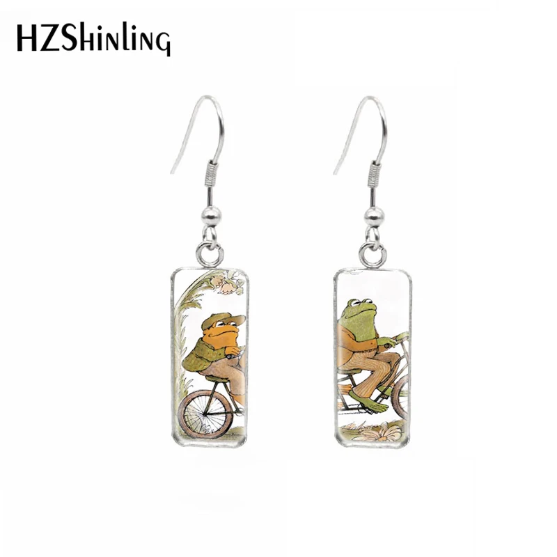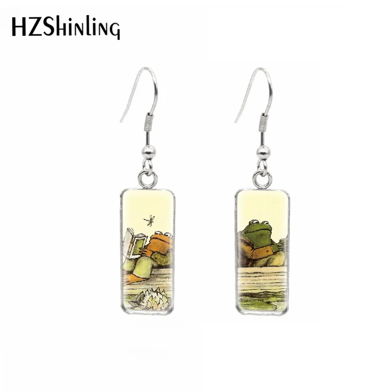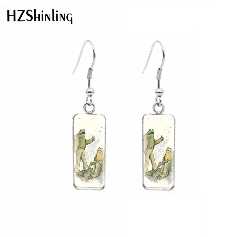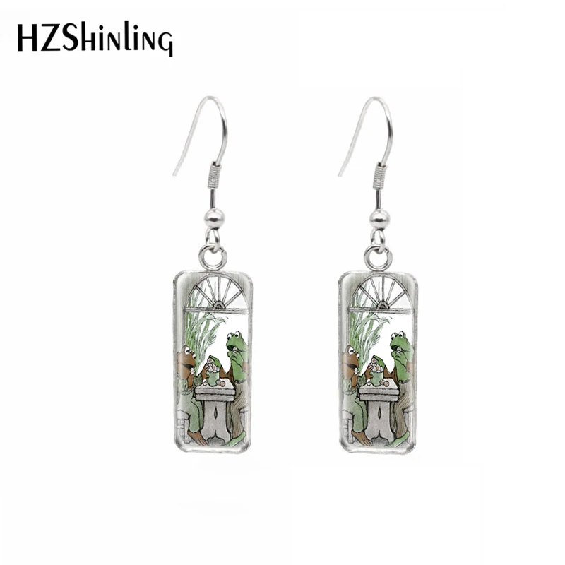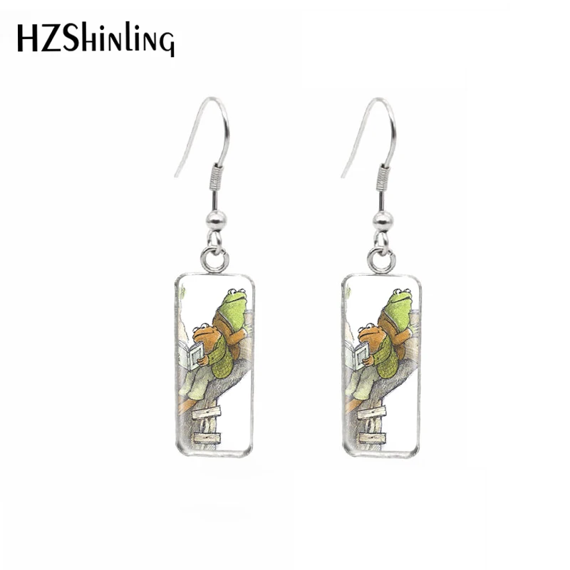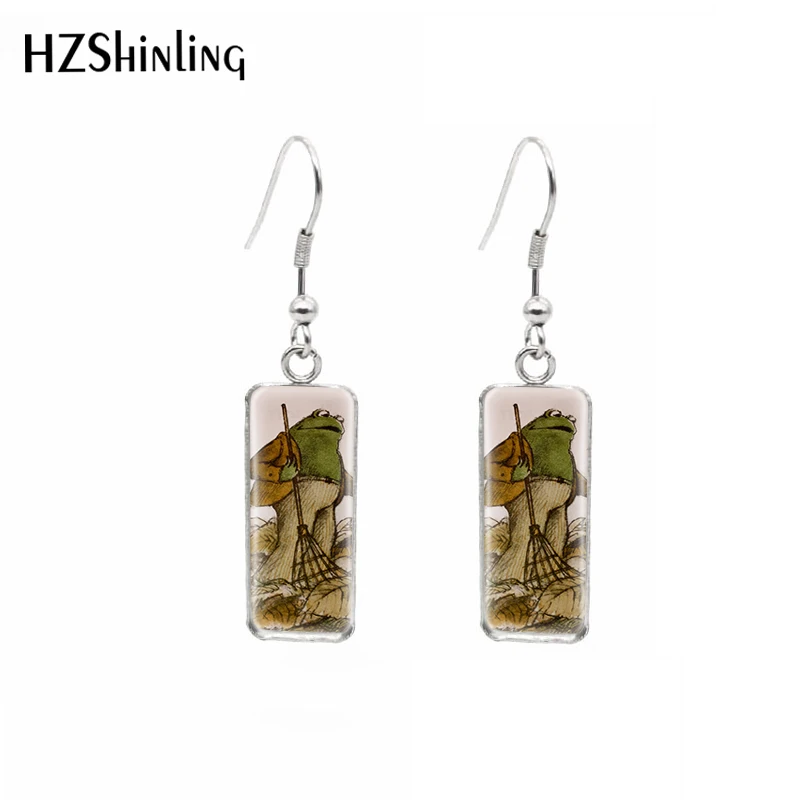 Прямоугольный крюк серьги из нержавеющей стали с кабошоном, лягушкой и жабой