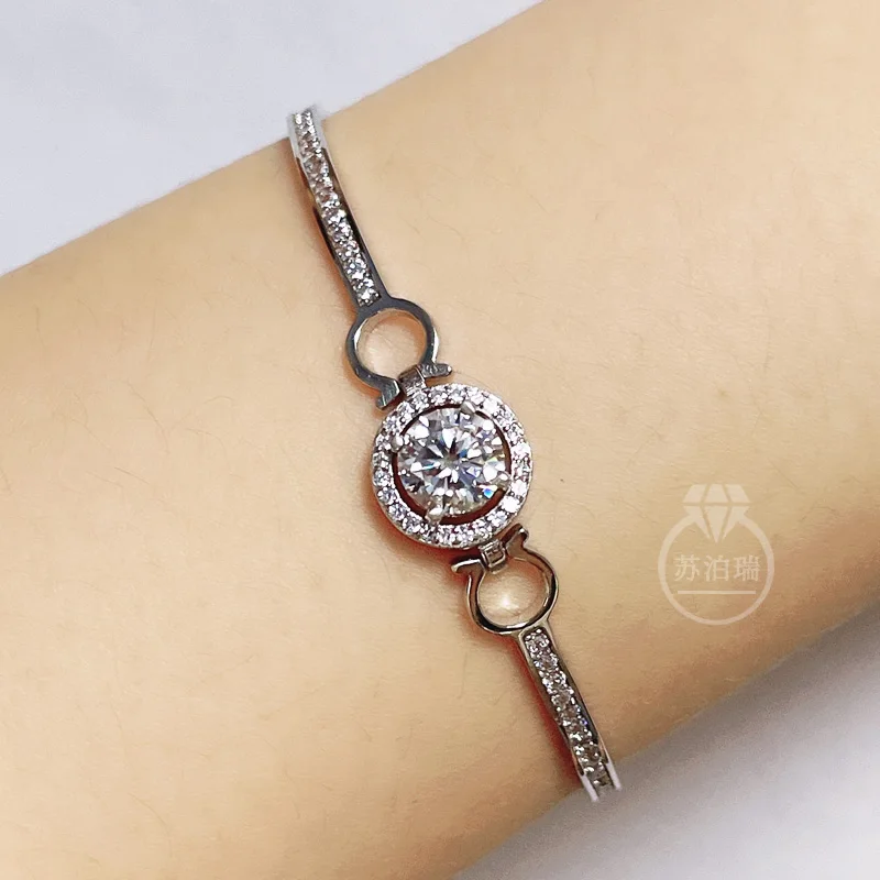 Реальный цвет D VVS1 теннисный браслет из муассанита 1-2CT алмазная теннисная цепочка регулируемый браслет S925 серебряные свадебные украшения для женщин