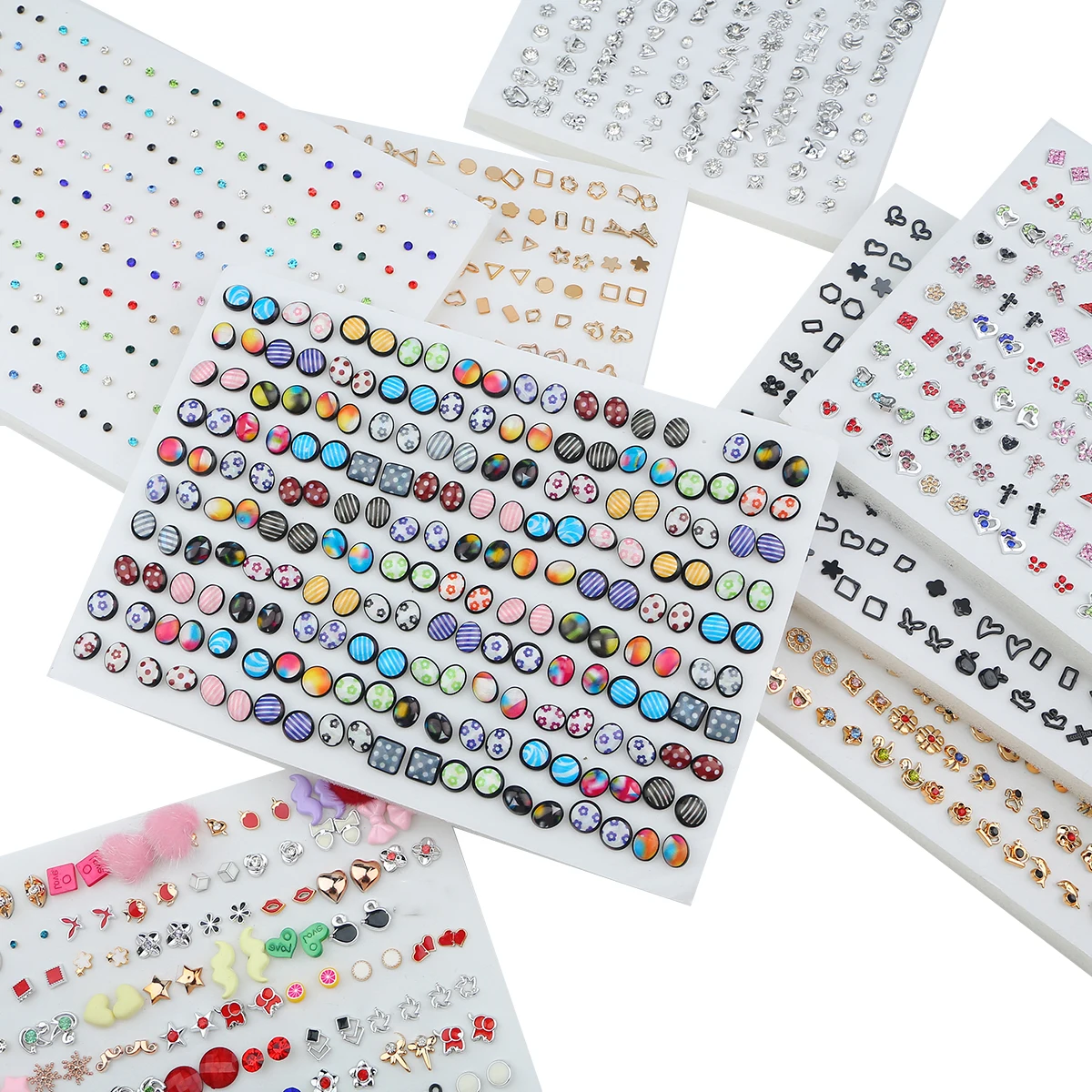Высокое качество 100 пар женских носков из акрила с украшением в виде кристаллов маленькие серьги-гвоздики комплекты для девочек в форме сердца в форме звезды животных Луна Корона, серьги, ювелирное изделие