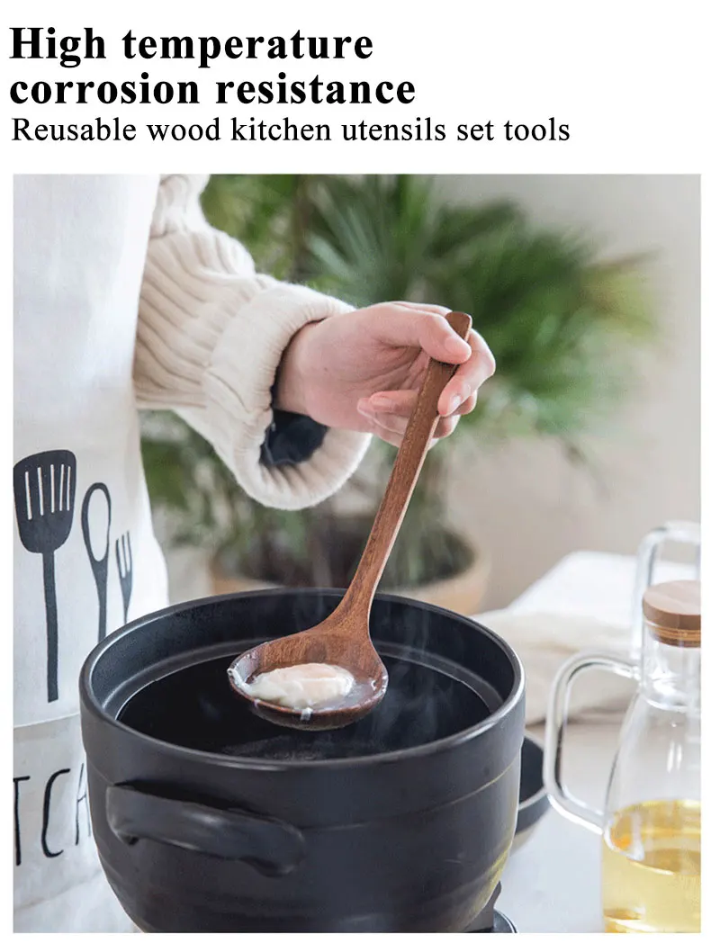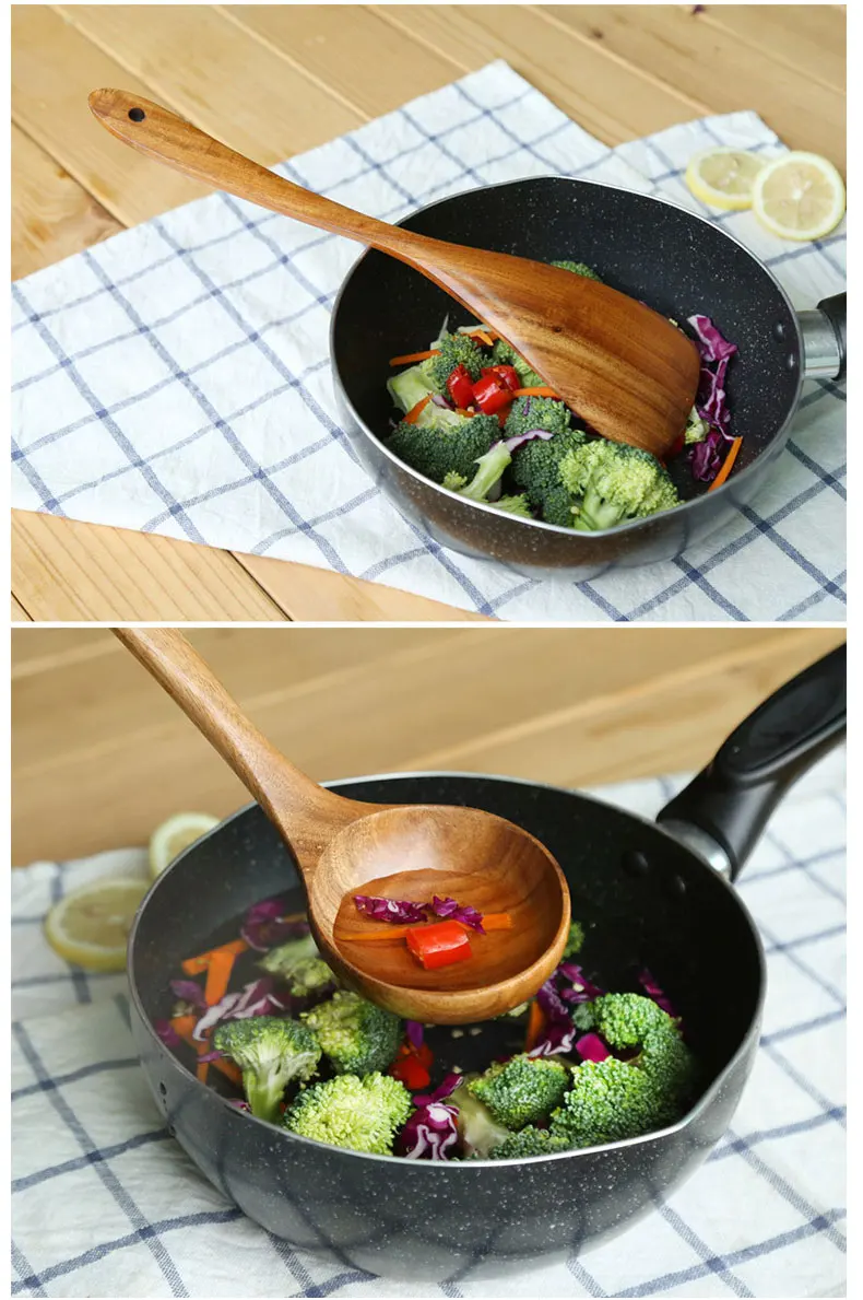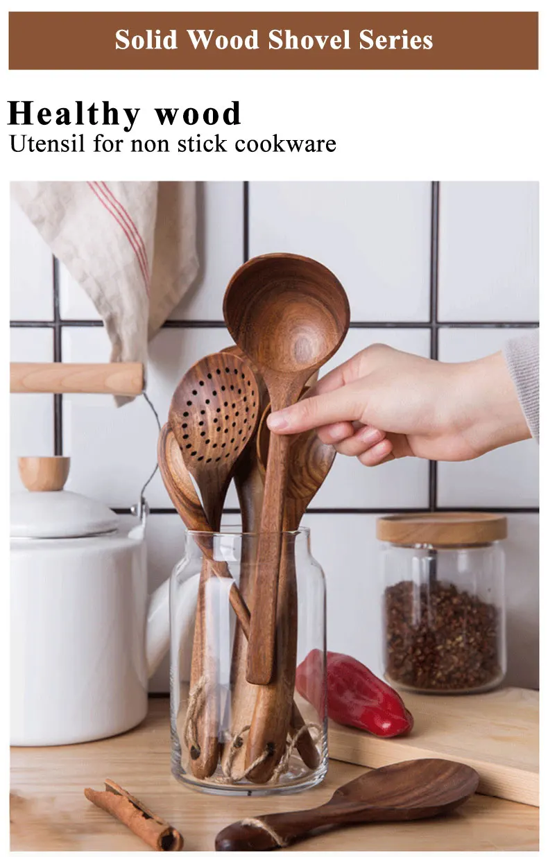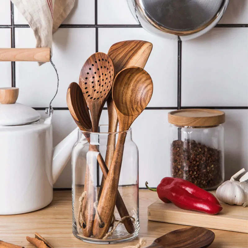7 шт.компл. Таиланд тиковое дерево деревянная посуда из натурального дерева ложка половник-дуршлаг Специальная Нано шумовка для супа Пособия по кулинарии деревянной ложкой Кухня инструмент