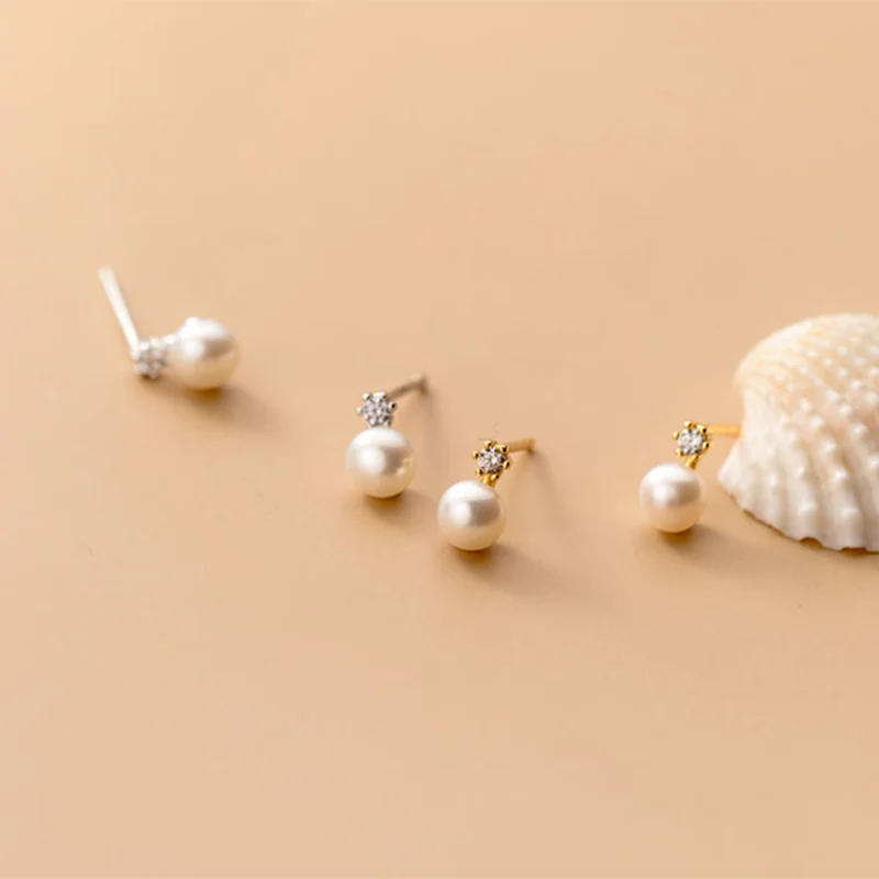 Женские мини-серьги WANTME, маленькие геометрические серьги-гвоздики из серебра 925 пробы с цирконием и жемчугом, корейская бижутерия шикарные очаровательные, 2021