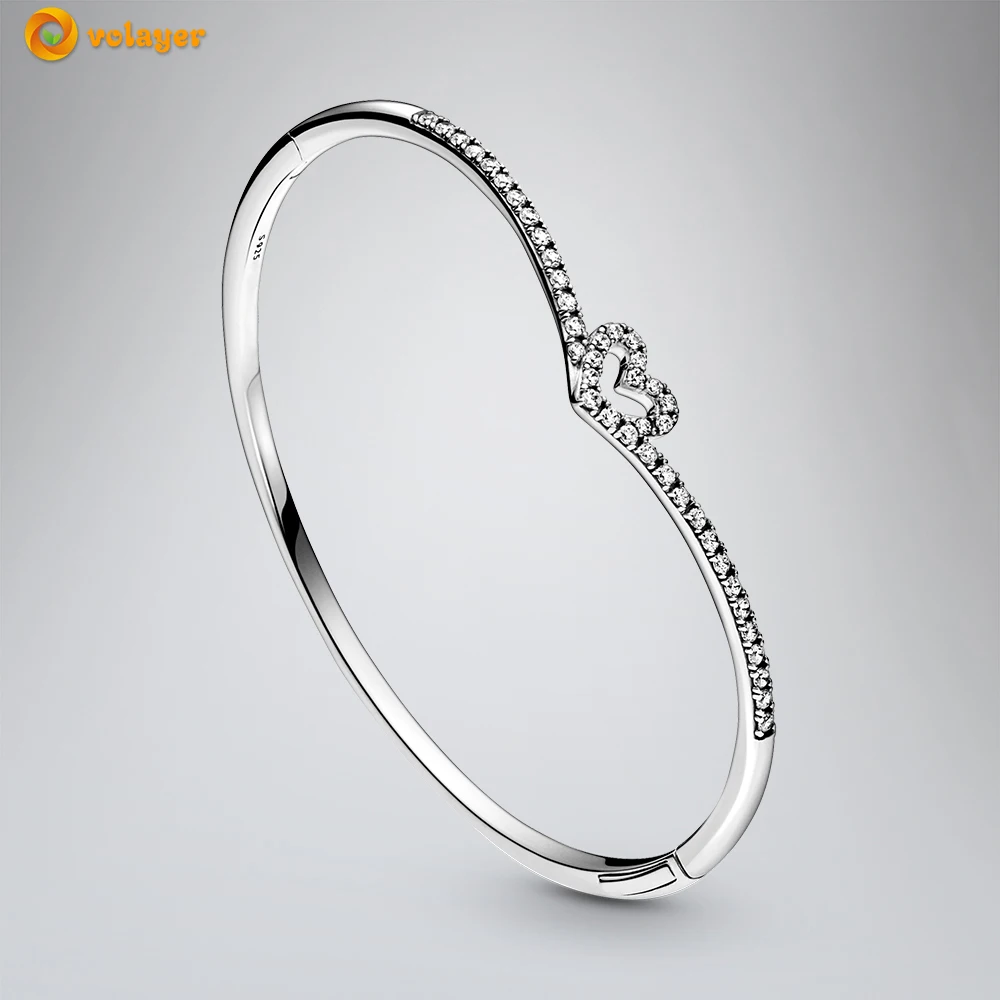 Женский браслет из серебра 925 пробы, с открытым сердцем и цветами ...