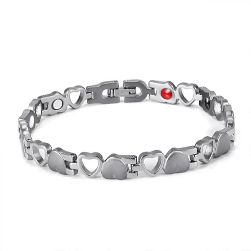 Магнитный браслет здоровья, 1 шт., стальная цепь, звено в форме сердца, искусственная кожа для женщин и мужчин