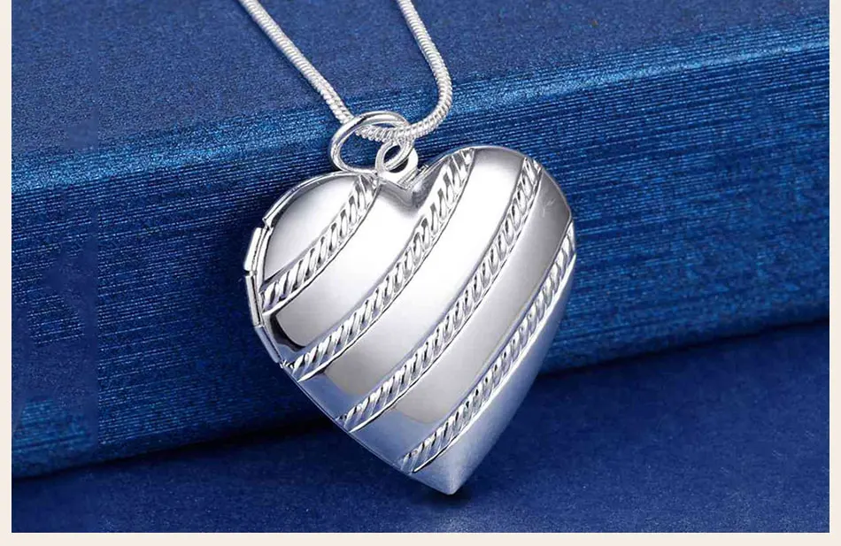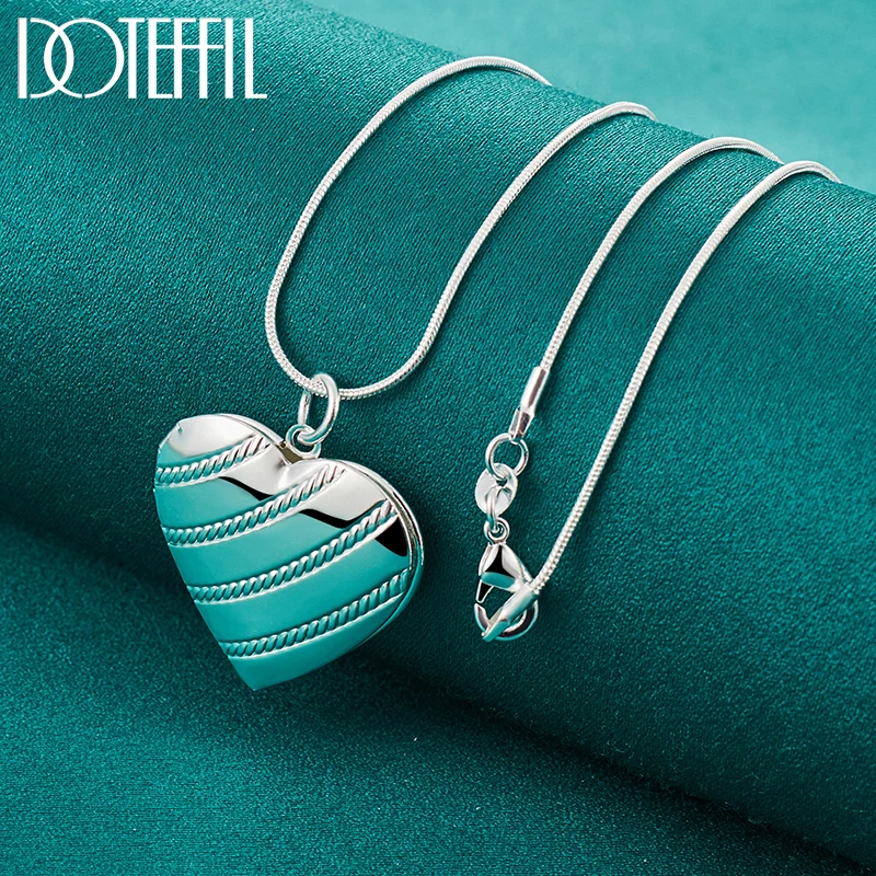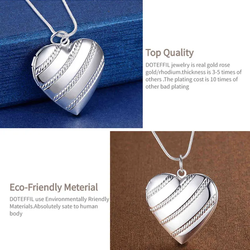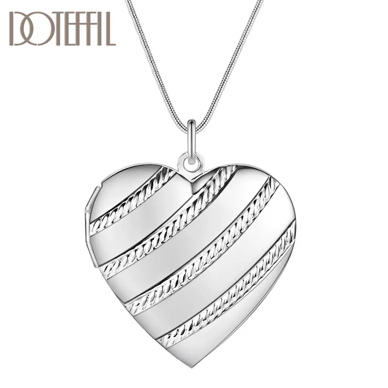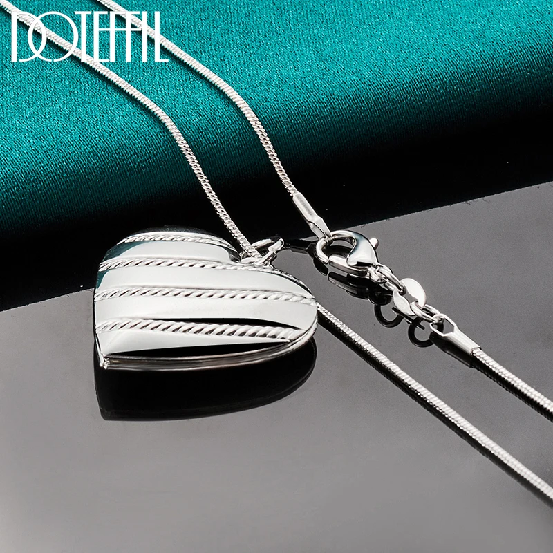 DOTEFFIL 925 Стерлинговое Серебро Любовь Heaet фоторамка змеиная цепочка ожерелье для женщин модное свадебное очарование ювелирные изделия