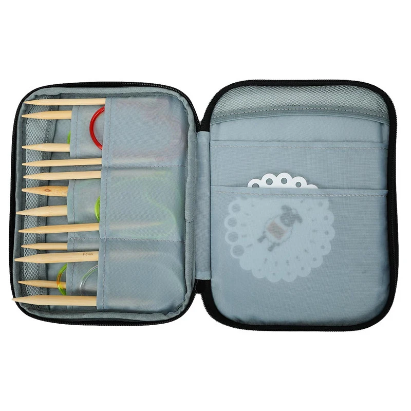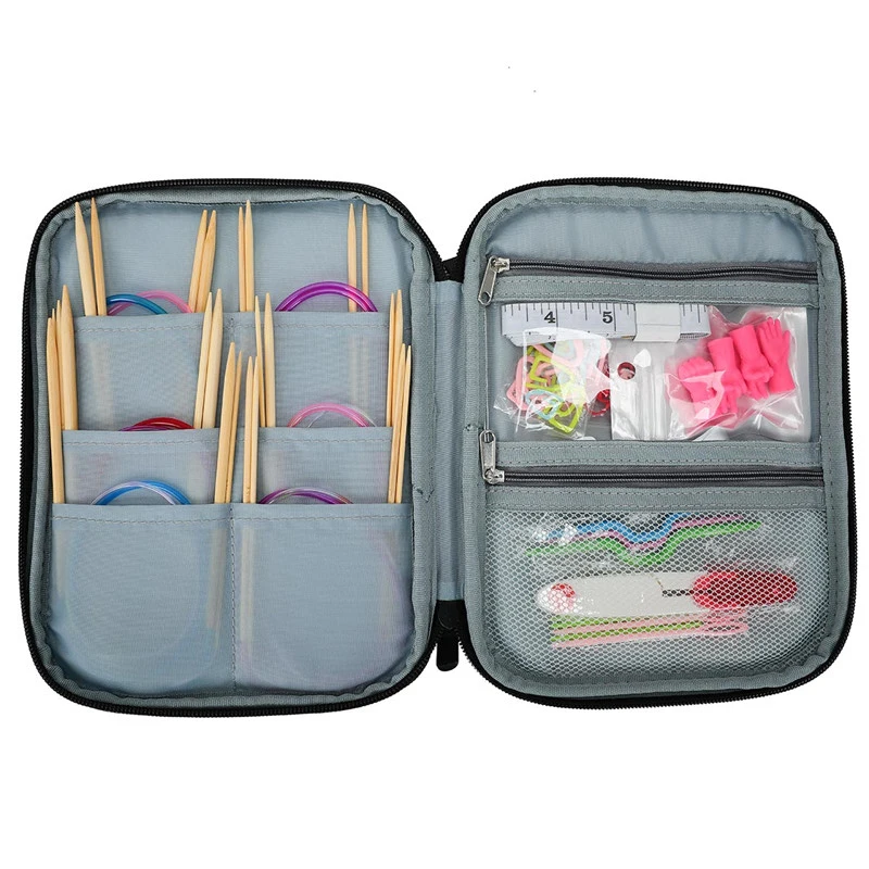 Аксессуары в комплект не входят. Изготовлен из сверхпрочного нейлона, более прочный и устойчивый к царапинам. Двухслойная конструкция. 4 кармана разной глубины для хранения 8-дюймовых спиц, 12 карманов для размещения круговых спиц, 1 карман на молнии ПВХ и 1 сетчатый карман на молнии для хранения ножниц, держателей для стежков, линейки прибор измерение, измерительная лента и другие аксессуары. Примечание: Мы отправляем только пустую сумку для хранения, не включая швейные принадлежности.