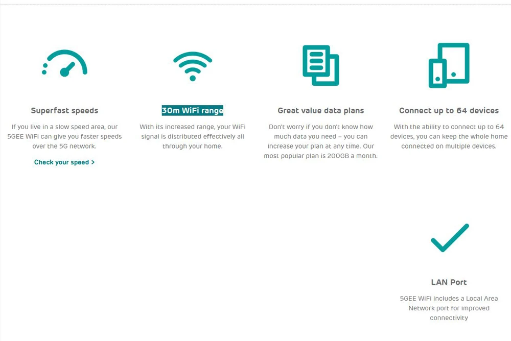 Wi-Fi 5G EE отлично подходит для создания быстрой сети 5G в вашем доме или совместном проживании, поэтому независимо от того, управляете ли вы потоковым спортомУмные домашние устройства или совершение множества видеозвонков, вы можете наслаждаться быстрой,Надежный Интернет. Кроме того, вы можете создать персональный и безопасный Wi-FiТочка доступа для вас и до 64 других Wi-Fi устройств, так что вся семья может наслаждаться 5G скоростями одновременно.