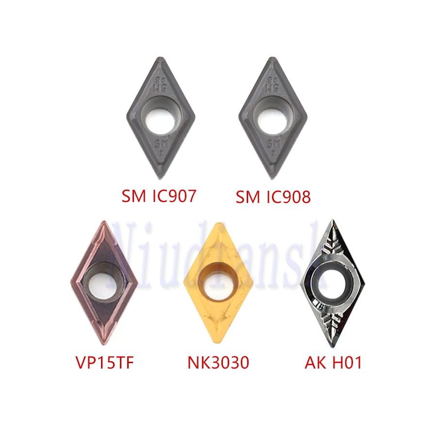 H01: подходит для обработки алюминия.VP15TF: подходит для обработки нержавеющей стали.NK3030: подходит для обработки стальных деталей.IC907: подходит для обработки нержавеющей стали, твердого сплава и углеродистой стали.IC908: подходит для обработки нержавеющей стали, твердого сплава и углеродистой стали.