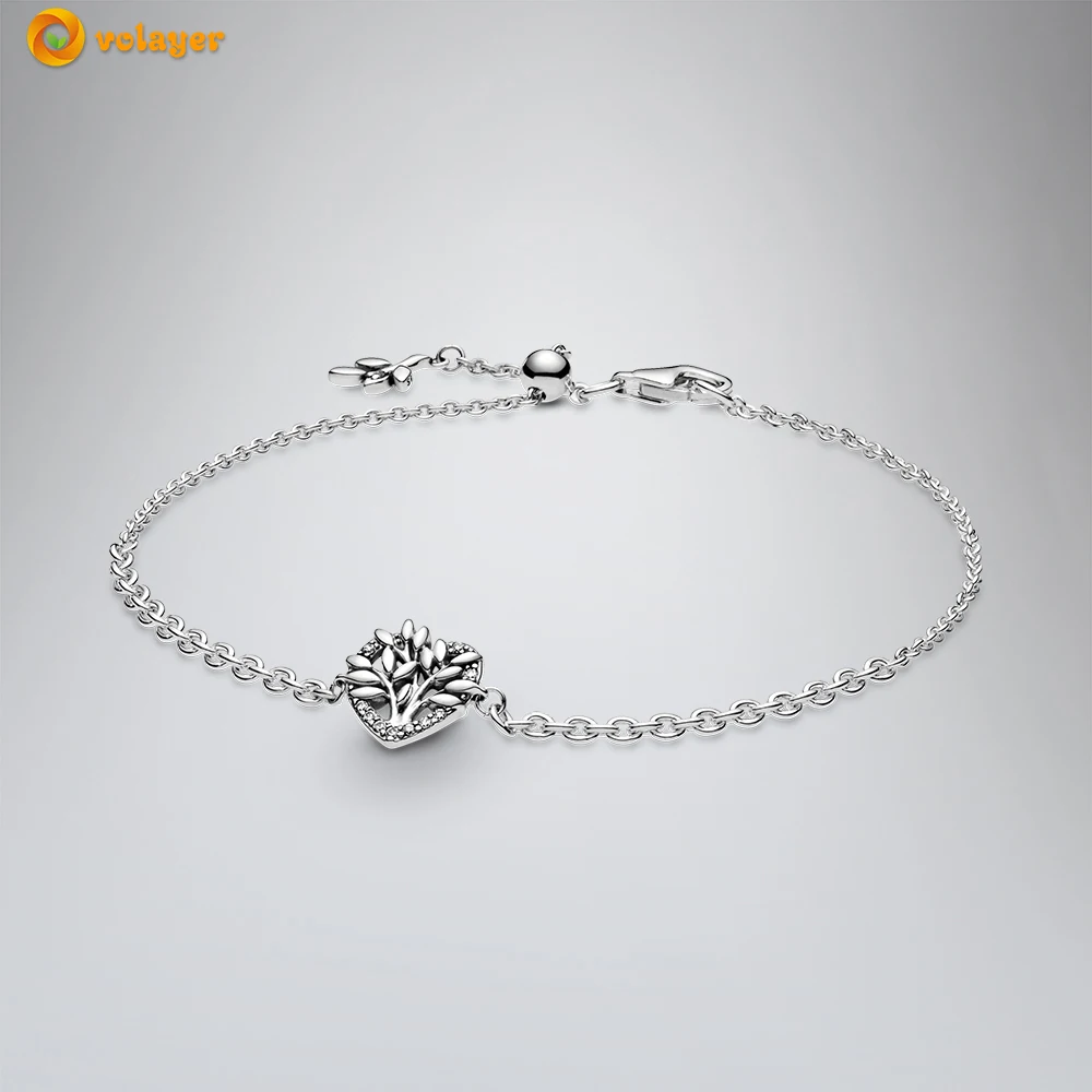 Женский браслет-цепочка с сердцем и деревом, из серебра 925 пробы