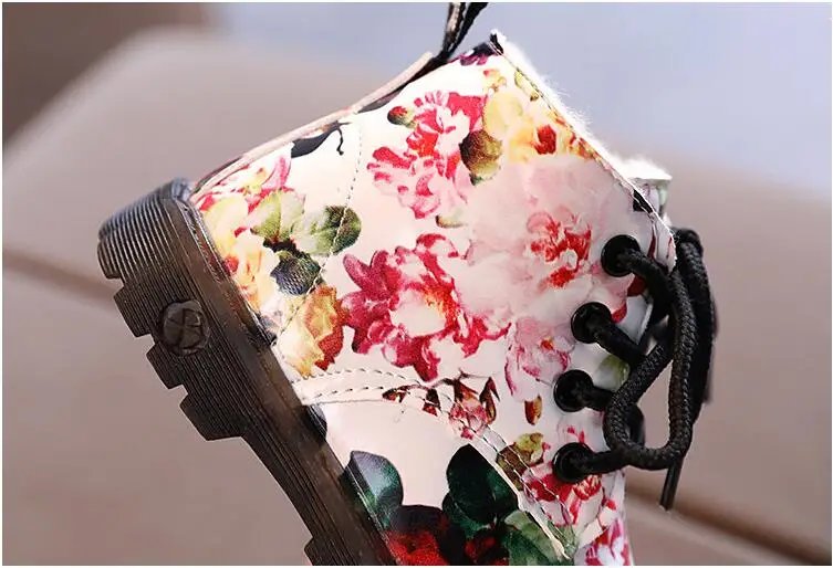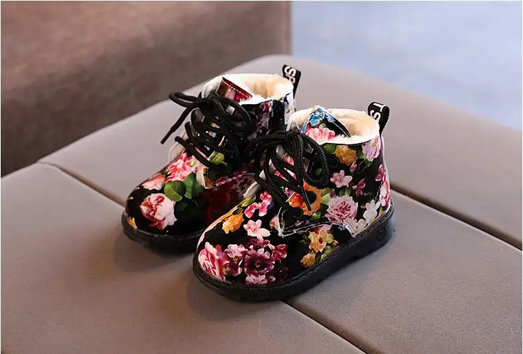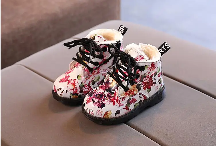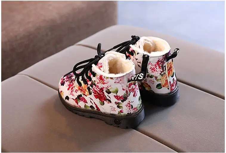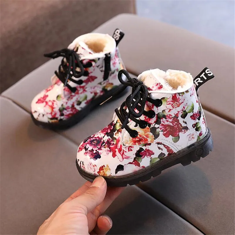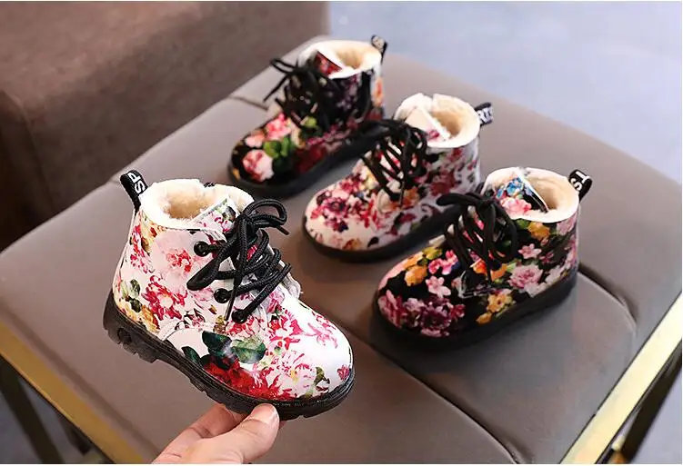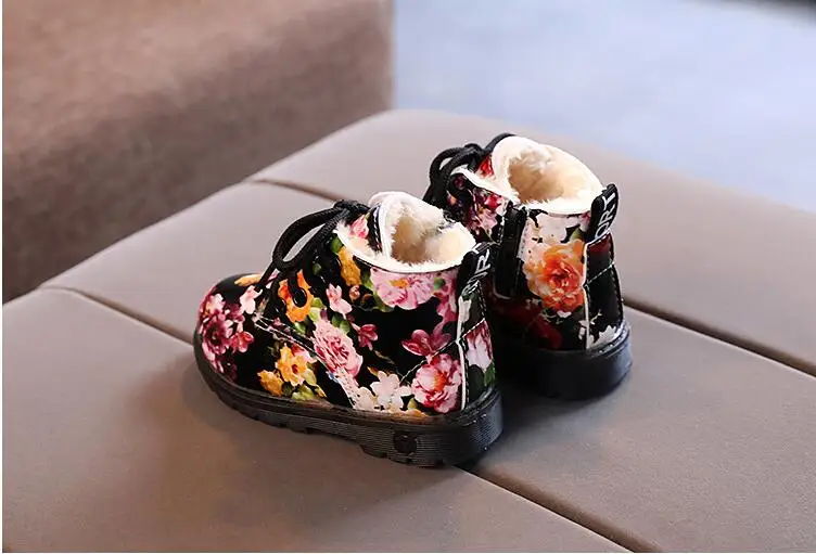 Зима 2021, короткие ботинки для девочек, хлопковые ботинки с цветочным принтом для мальчиков, детские зимние ботинки с говяжьей подошвой, оптовая продажа