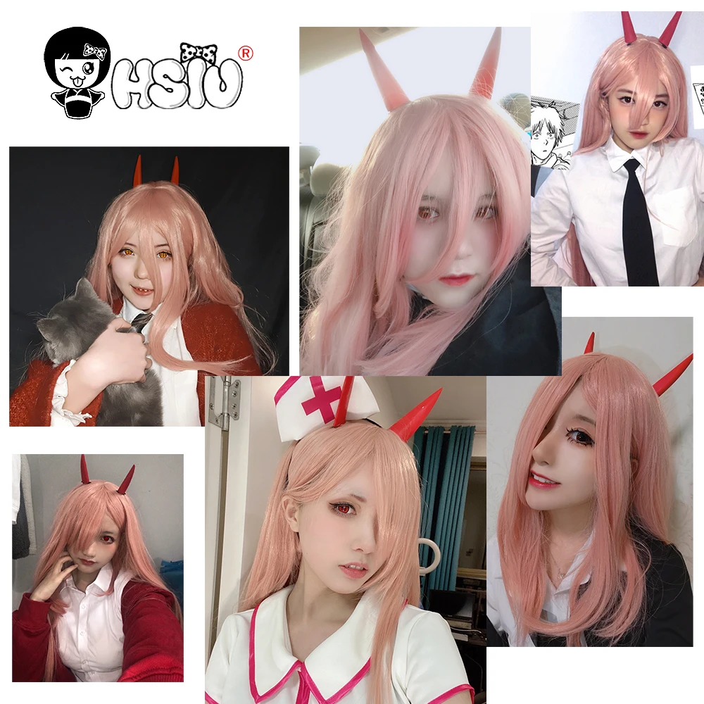 Парик мощный для косплея человека из аниме бензопила, пикантный синтетический парик с длинными волосами, розового, оранжевого цвета, с бесплатным подарком, головной убор с шапочкой