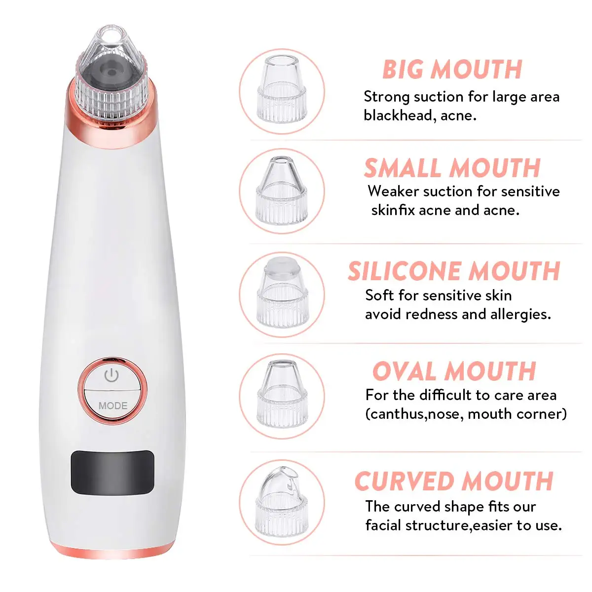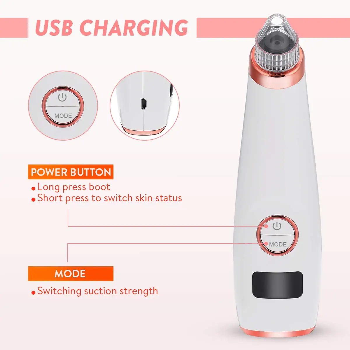 Прибор для удаления угрей, вакуумный Электрический инструмент для удаления угрей, инструмент для удаления угрей, очиститель лица, всасывающий набор инструментов для женщин и мужчин, Перезаряжаемый USB светодиодный дисплей с 5 присосками