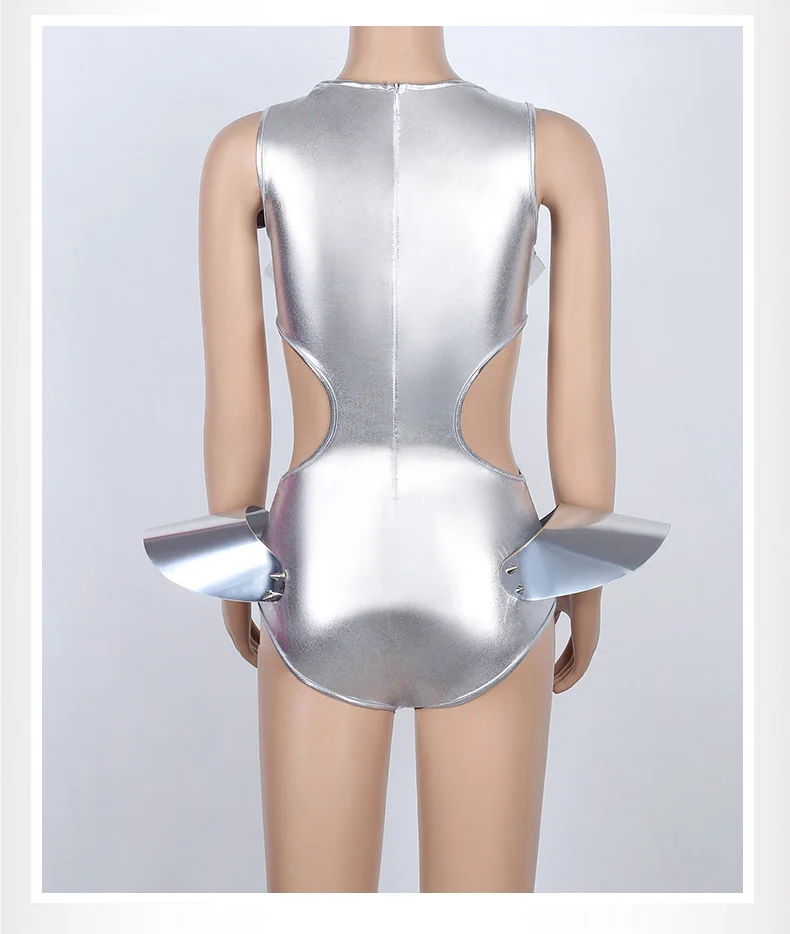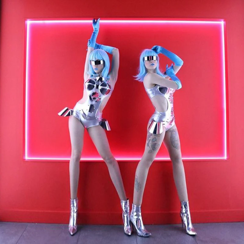 Джазовый танцевальный костюм Серебряный боди для певцы танцовщицы одежда для сцены для женщин пикантные Клубные DJ ночной Комбинезон Танцы Gogo наряды DC1022