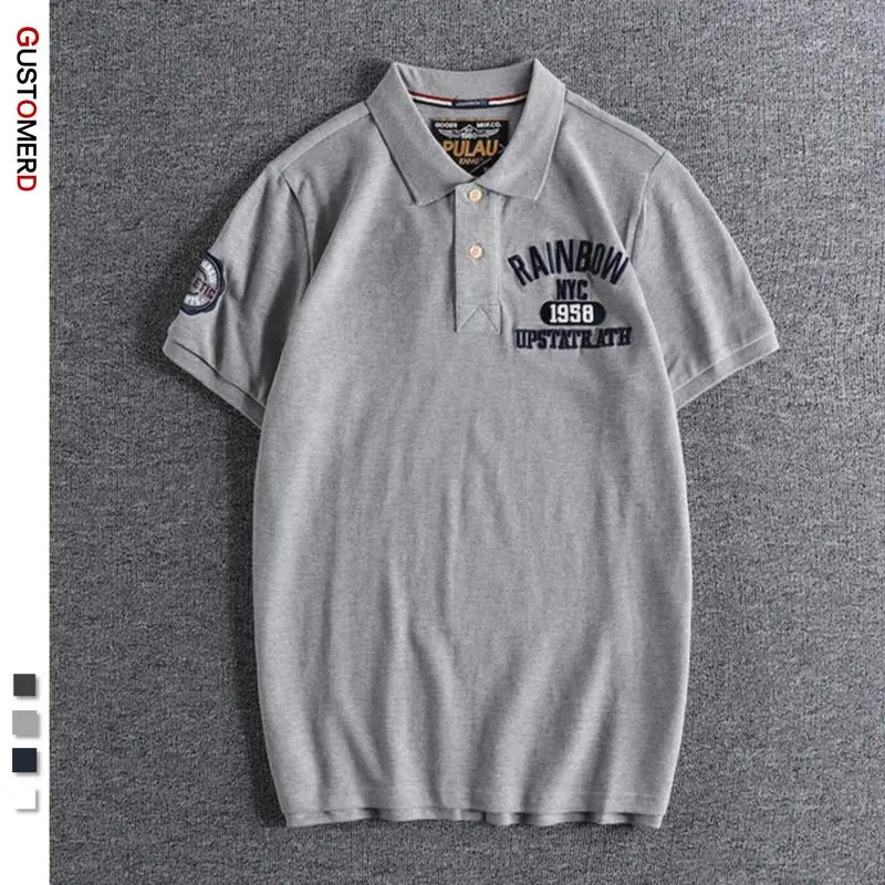Рубашка-поло GUSTOMERD мужская с коротким рукавом, Повседневная футболка из 100% хлопка, однотонная, уличная одежда свободного покроя, на лето