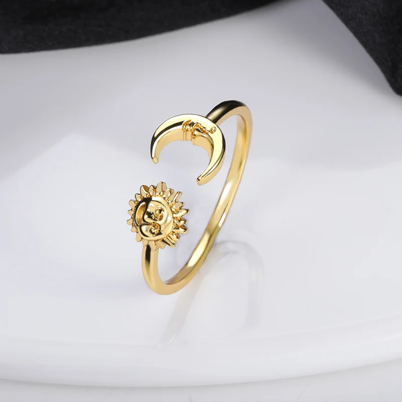 Простое эстетическое регулируемое кольцо с солнцем и луной, минималистичное винтажное преувеличенное готическое ювелирное изделие, небесное кольцо для женщин, Anillos
