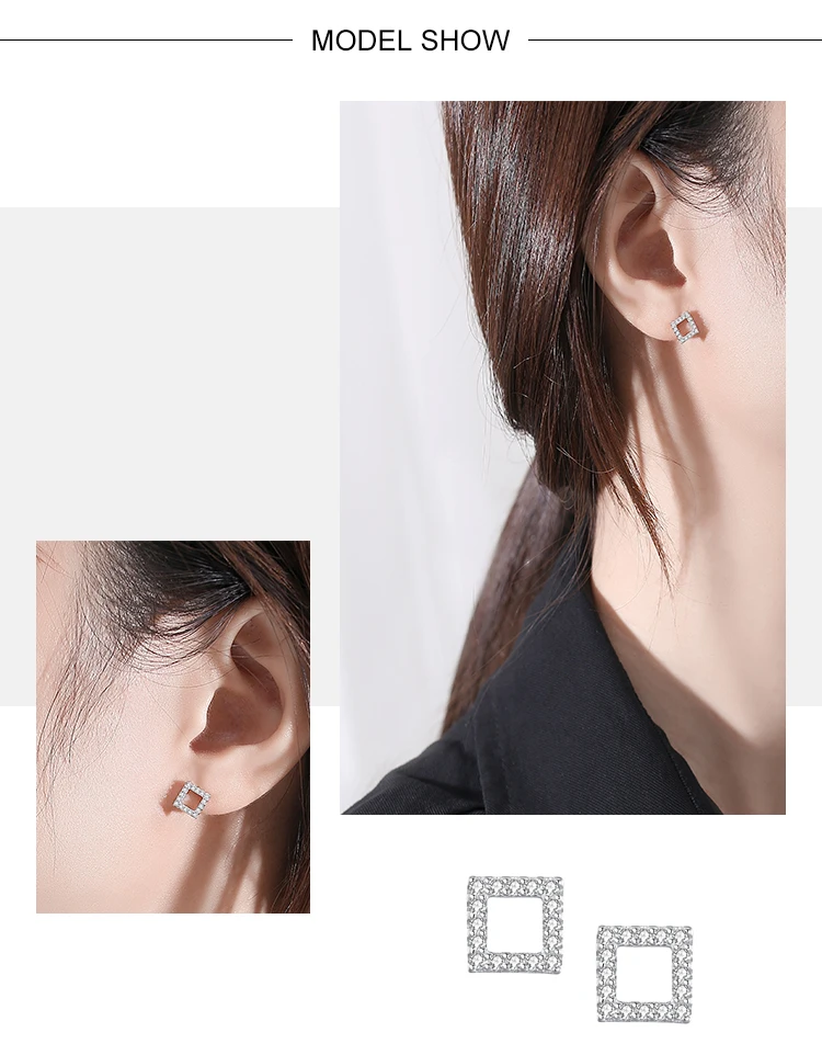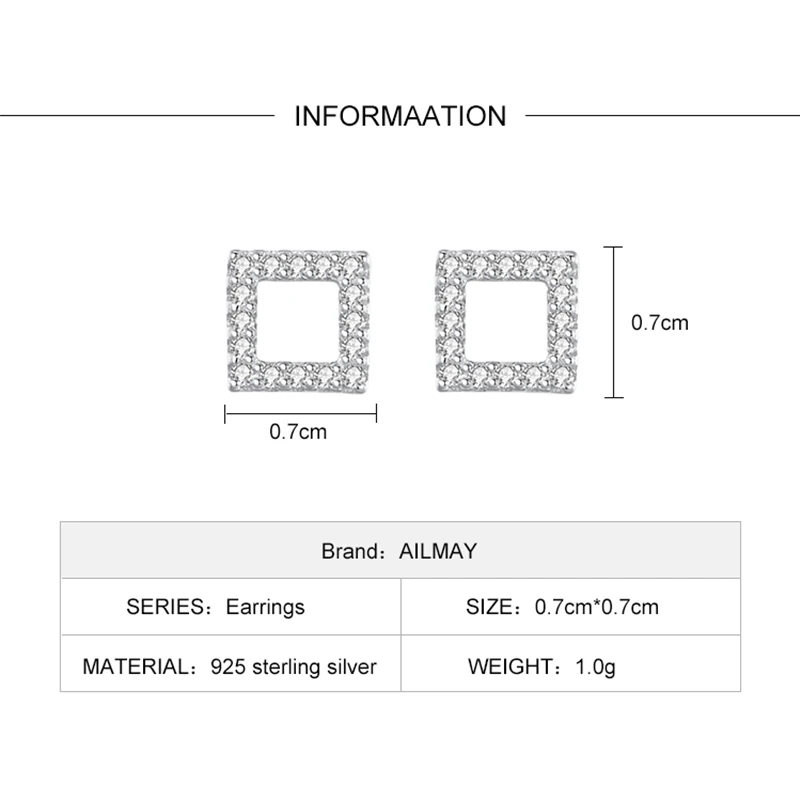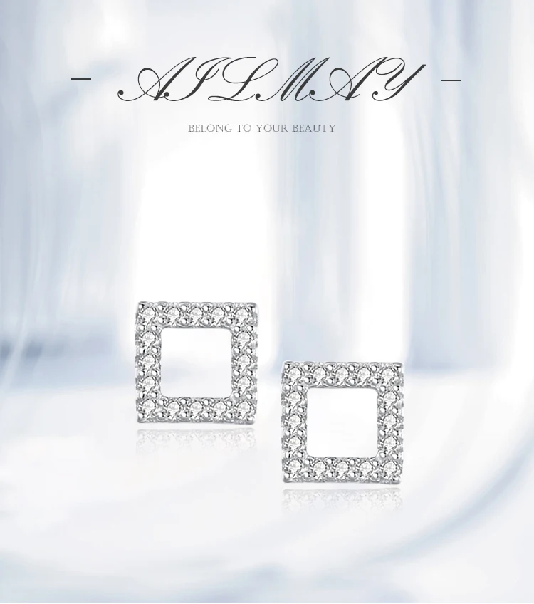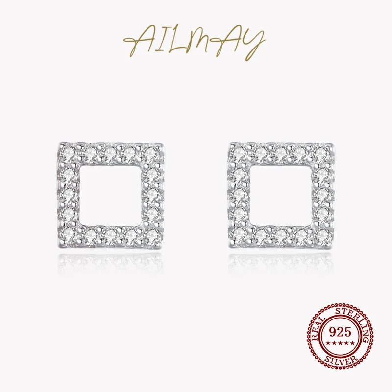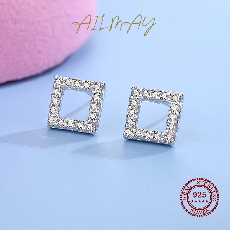 Ailmay реальные 925 стерлингового серебра Изысканный Прозрачный Циркон квадратной формы в виде геометрических фигур, серьги гипоаллергенные, для женщин, ювелирное изделие, подарок