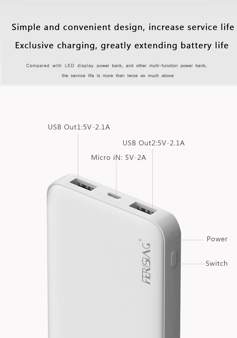 Внешний аккумулятор FERISING, ёмкость 10000мАч, портыUSB, подойдёт ...
