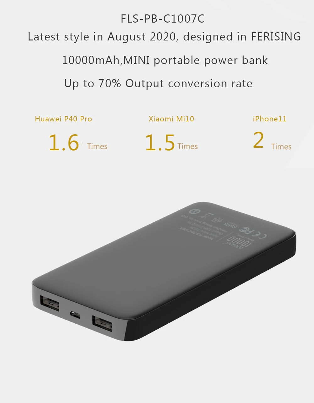 Зарядное устройство FERISING Power Bank 10000 мАч для iPhone Xiaomi Power Bank Внешняя аккумуляторная батарея, портативное зарядное устройство повербанк Power Bank