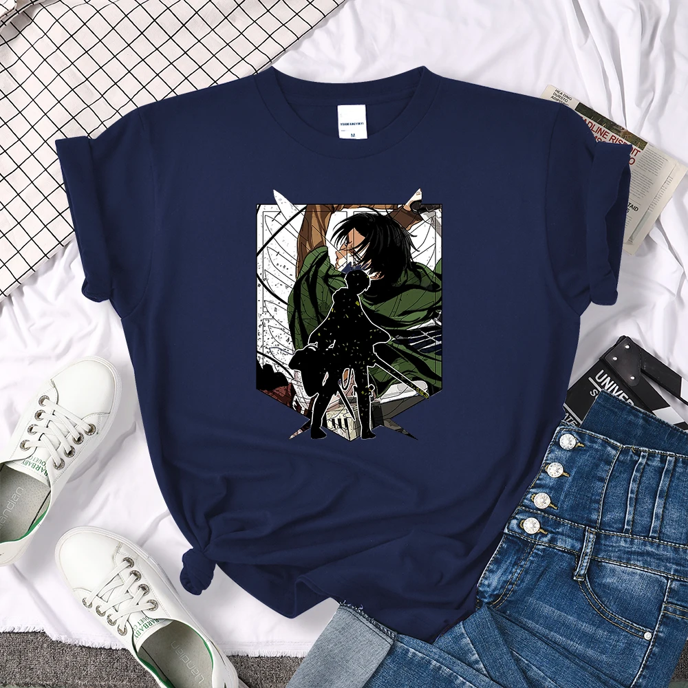 Женская футболка с принтом аниме атака на Титанов, летняя дышащая ф...