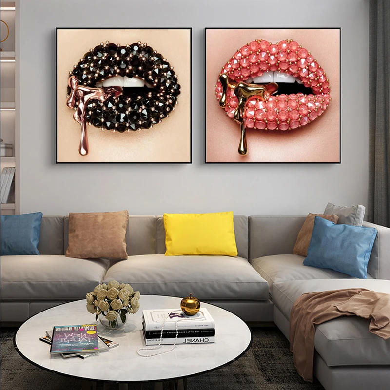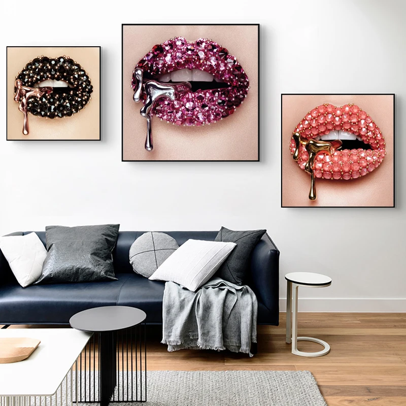 Плакаты и принты на холсте, с изображением розовых губ, для гостиной