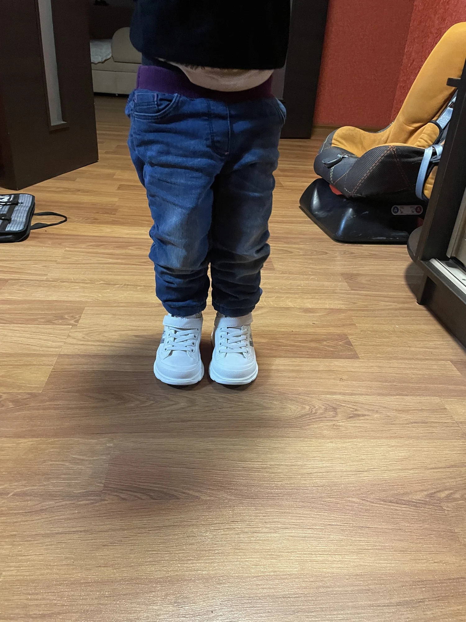 Кеды очень хорошие, подошва гибкая, выглядят отлично, в сырую погоду то, что надо. Ребенок очень долго ходил в них пешком, даже на руки не просился, это значит, что ноге удобно. В первую прогулку испачкали обувь довольно сильно, но мылом быстро отмылись. Длина стельки 14 см, размер 22. Стелька под пяткой немного утолщенная, есть супинатор.