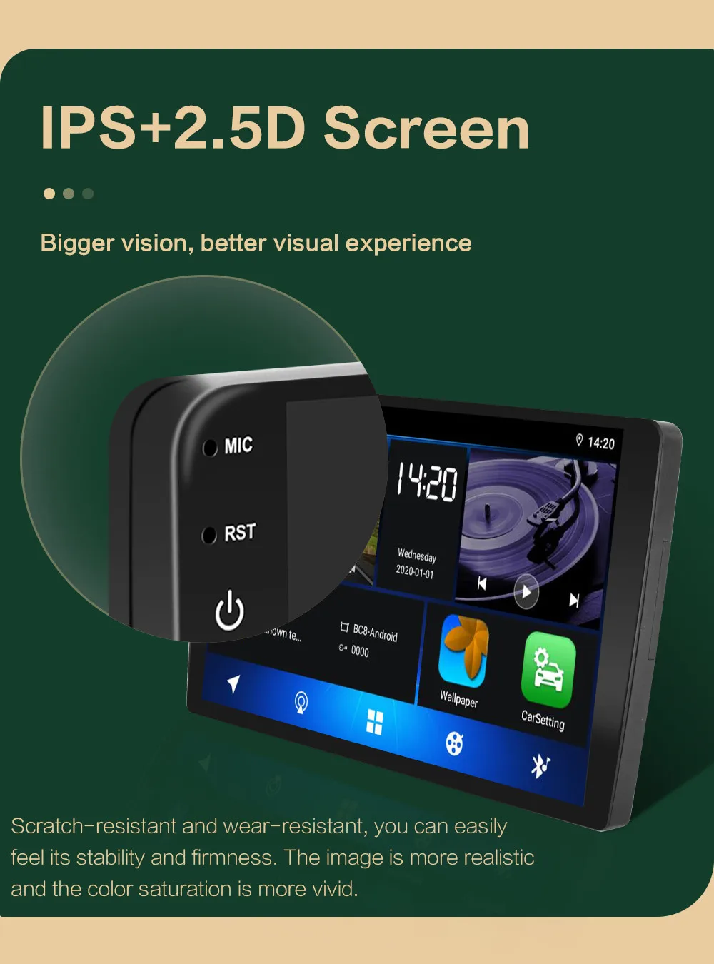 2. 8/9 дюймов 2.5D HD емкостный экран: разрешение 1240*800 (опционально)