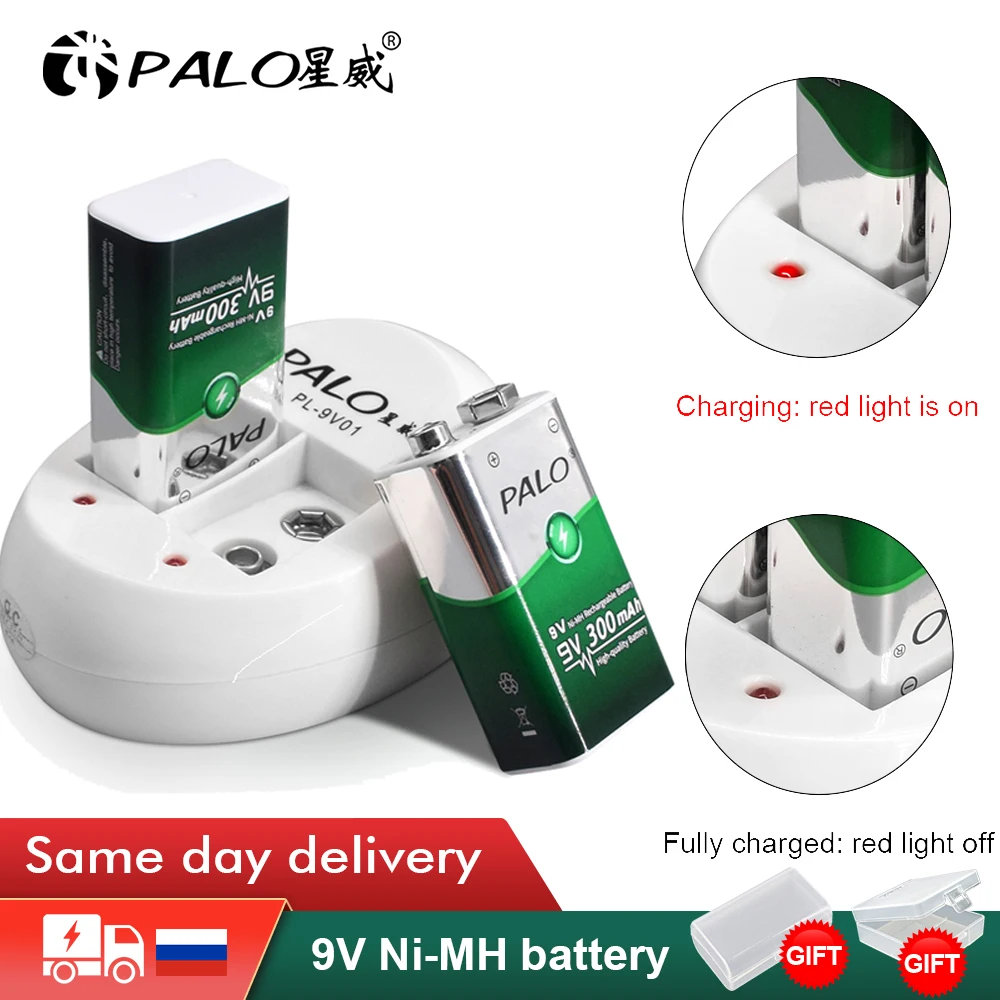 Аккумуляторная батарея PALO 9 в 300 мАч Ni-MH для мультиметра, микрофона, игрушечного пульта дистанционного управления + умное зарядное устройство 9 в