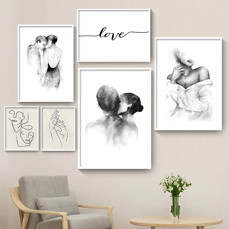 Черно-белая картина эскиз девушка влюбленная линия искусство лицо тело абстрактная настенная Картина на холсте скандинавский принт настенные картины декор для комнаты
