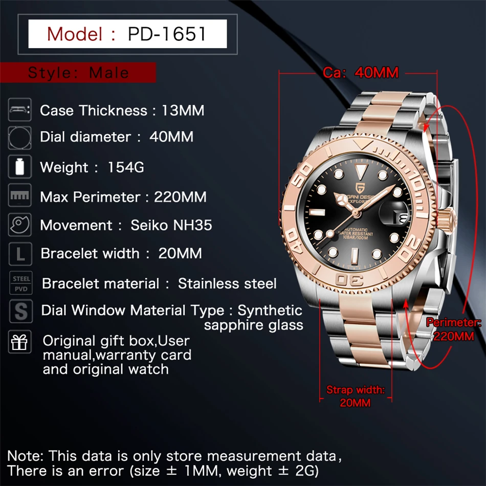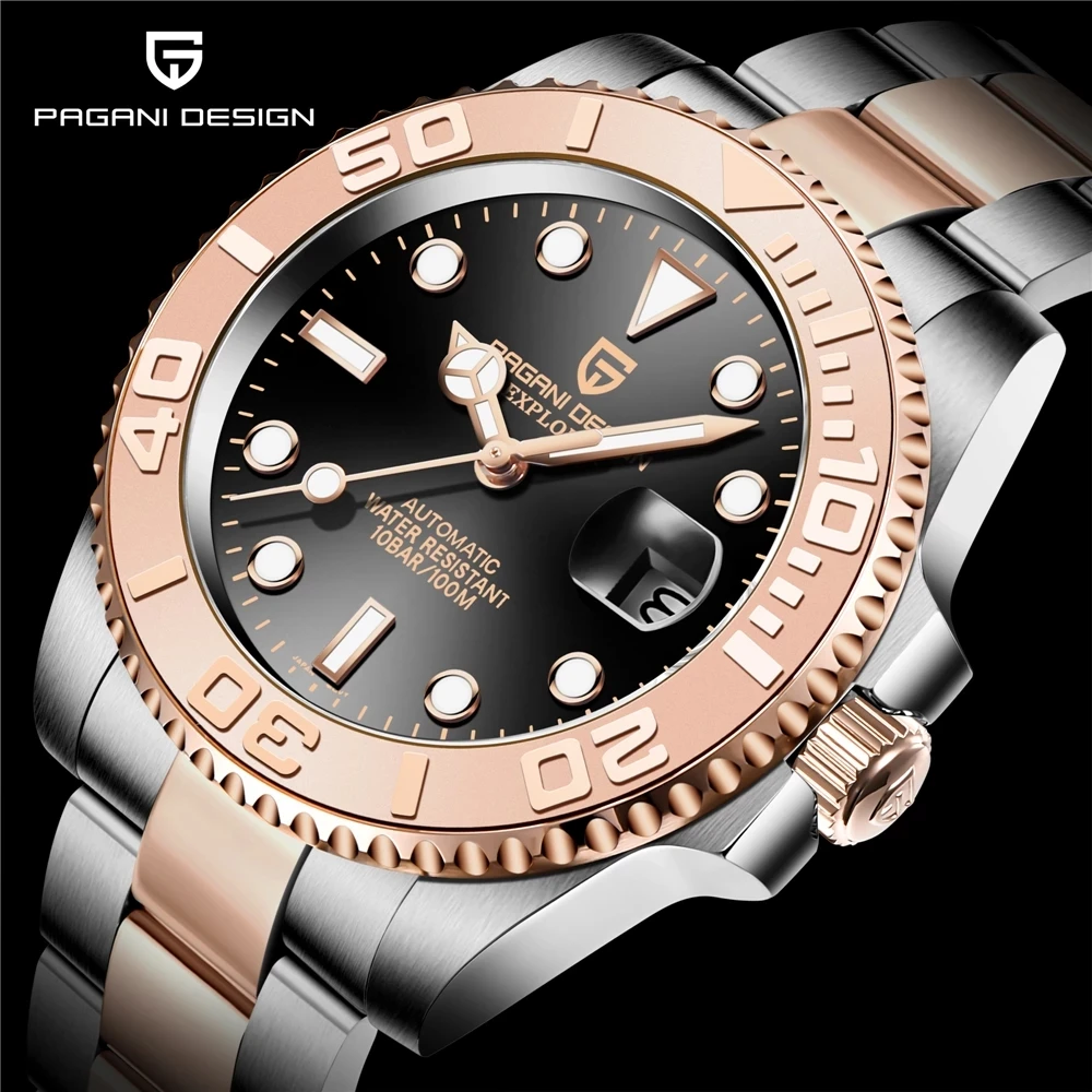 Часы наручные PAGANI Мужские механические, брендовые водонепроницаемые с сапфировым стеклом NH35A, с автоподзаводом, из нержавеющей стали
