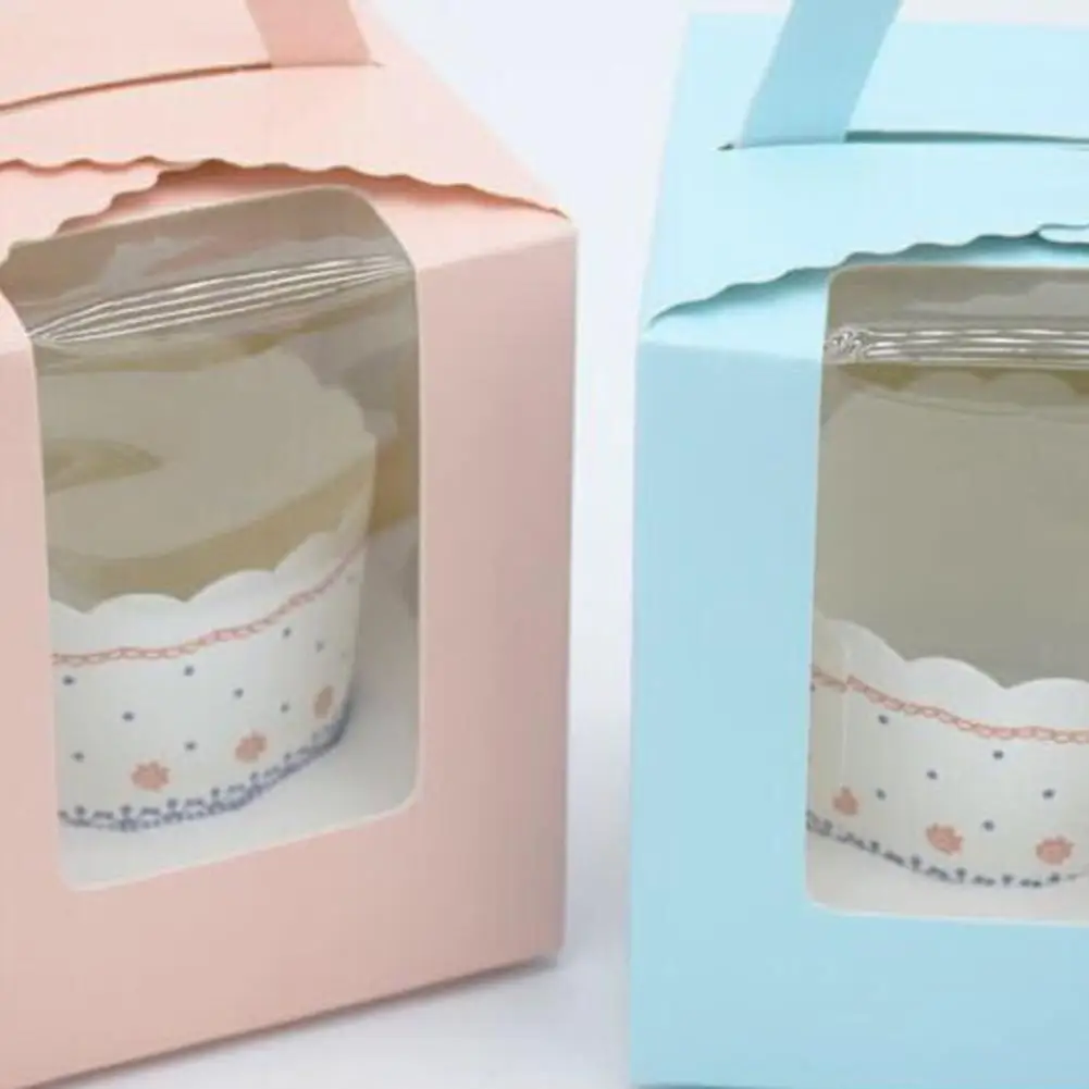 Контейнеры для выпечки, коробки для одного капкейка кексов, с прозрачным окном, с ручкой, 10 шт.