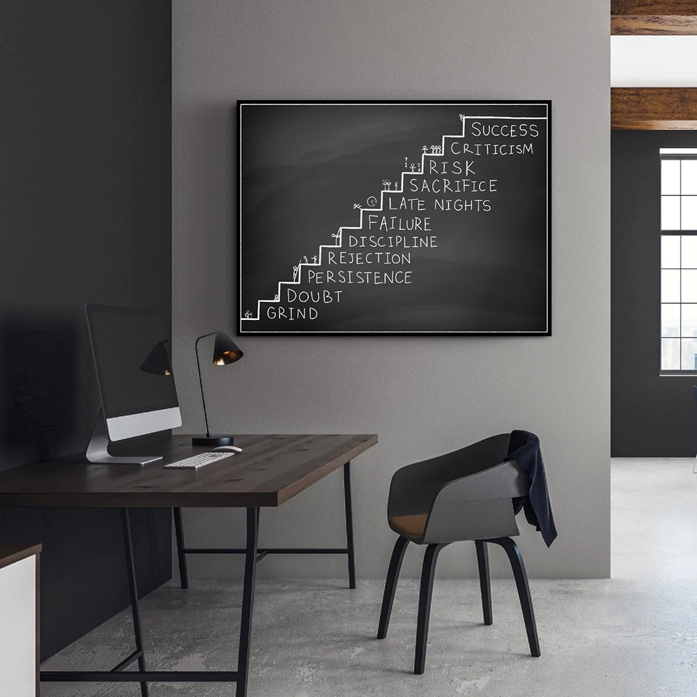 Успех Шаг черные мотивационные постеры принты офисный Декор современное искусство мотивация предпринимателя холст картина настенные картины