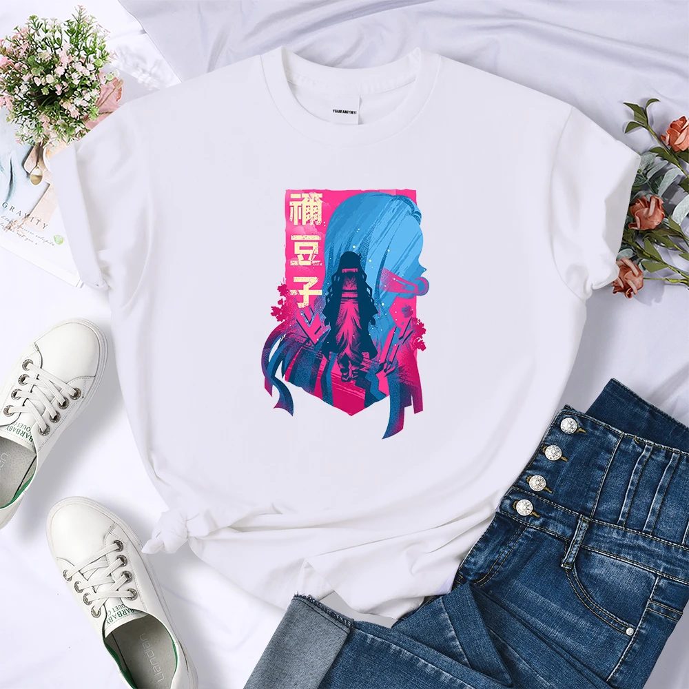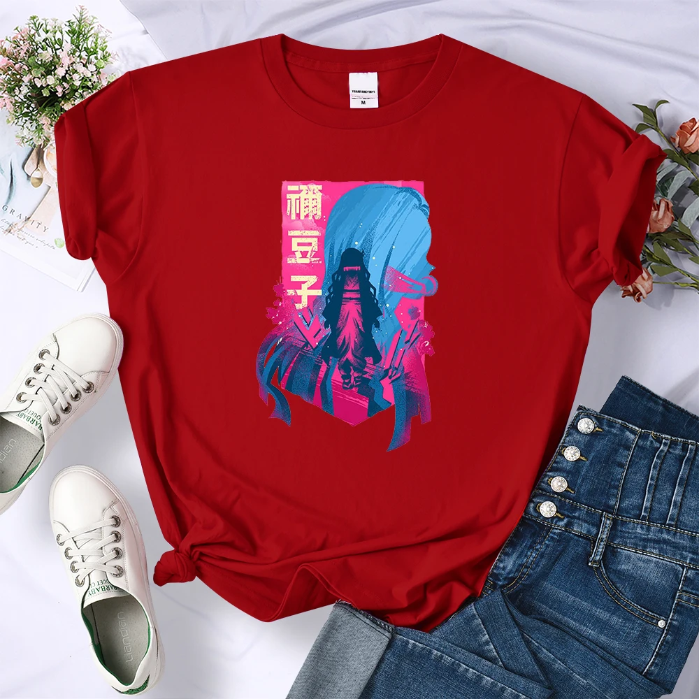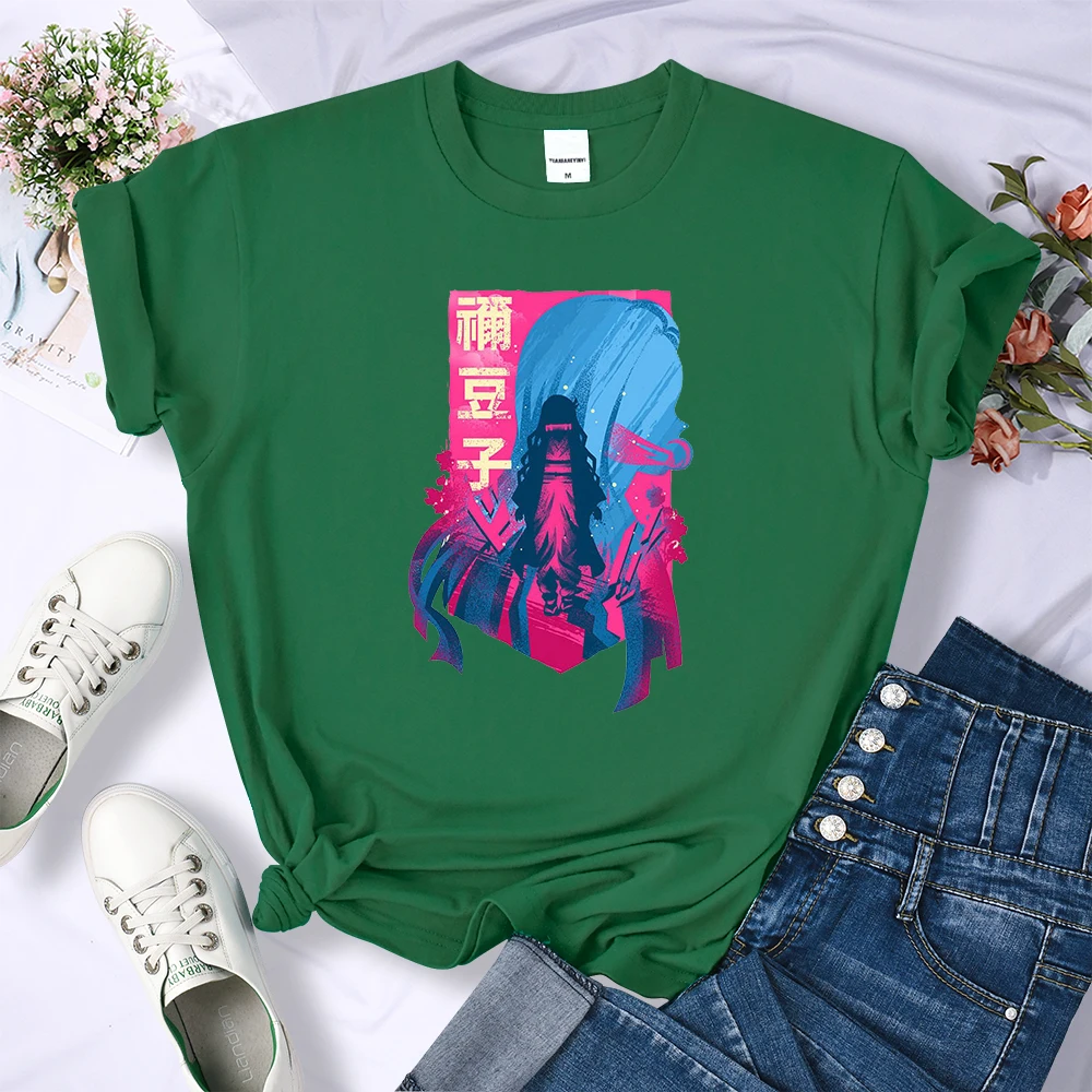 Футболка женская оверсайз с аниме рассекающий демонов, повседневный брендовый Свободный Топ с принтом камадо незуко, летняя одежда в стиле аниме