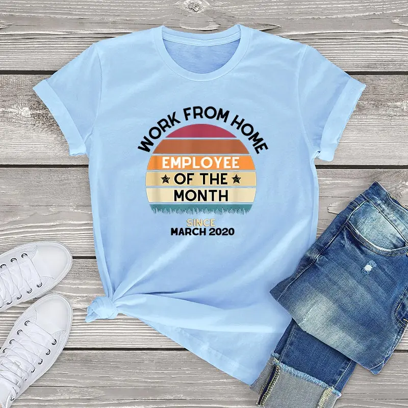 Футболка унисекс из 100% хлопка, женская футболка для работы с домашним сотрудником месяца с марта 2020, женская футболка с принтом, модные футболки с графическим принтом, топы большого размера, Спортивная уличная одежда, xxxl